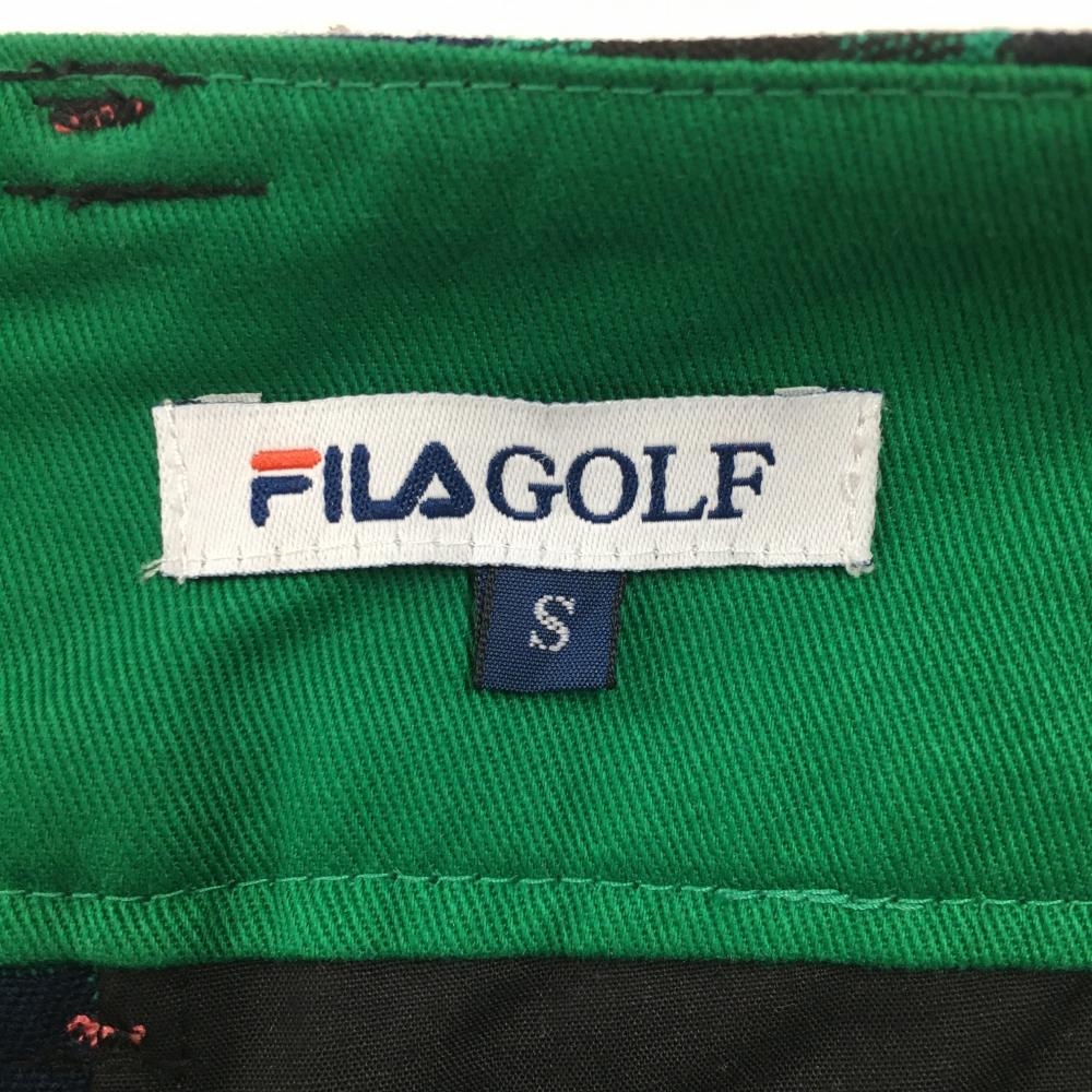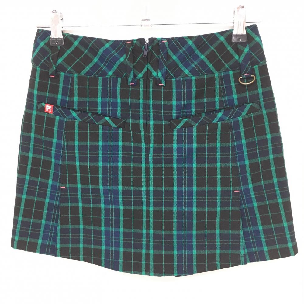 【超美品】フィラゴルフ キュロットスカート 黒×グリーン チェック柄 ティー装着可 レディース S ゴルフウェア FILA GOLF