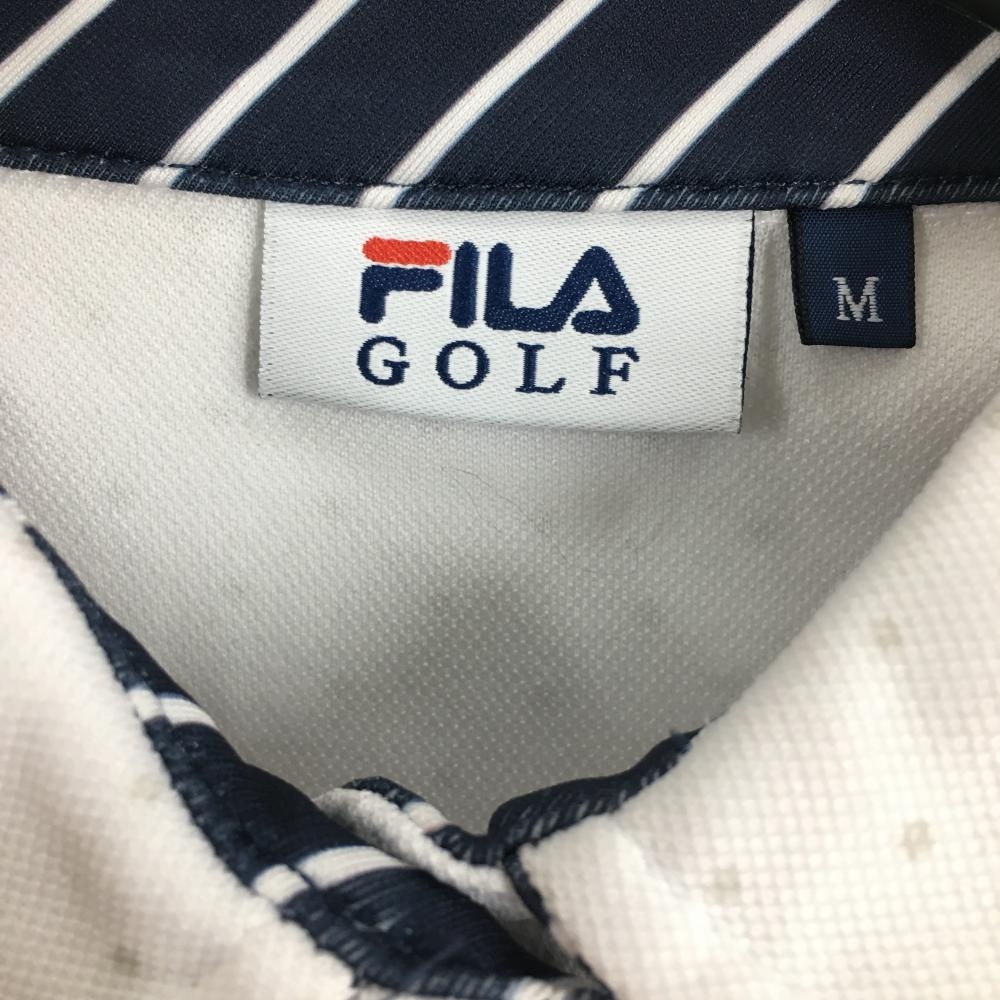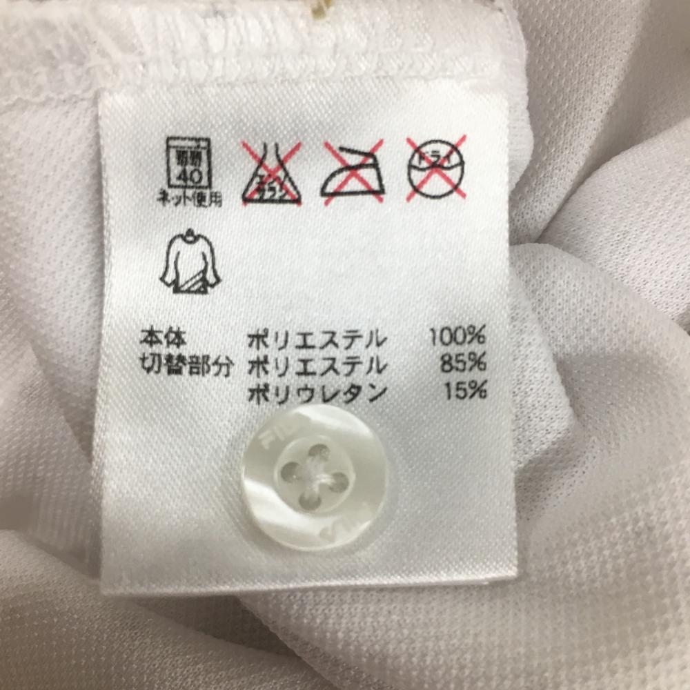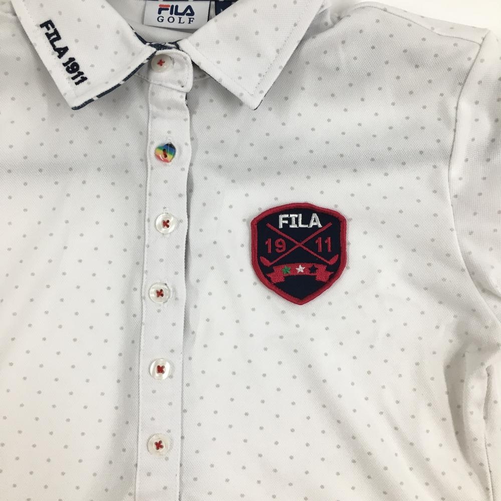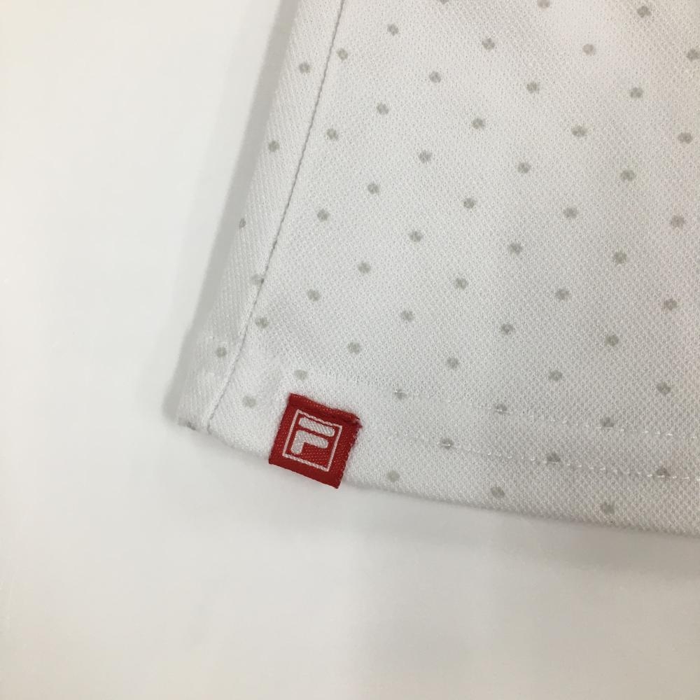 【超美品】フィラゴルフ 半袖ポロシャツ 白×グレー ドット柄 襟裏斜めストライプ ワッペン レディース M ゴルフウェア FILA GOLF