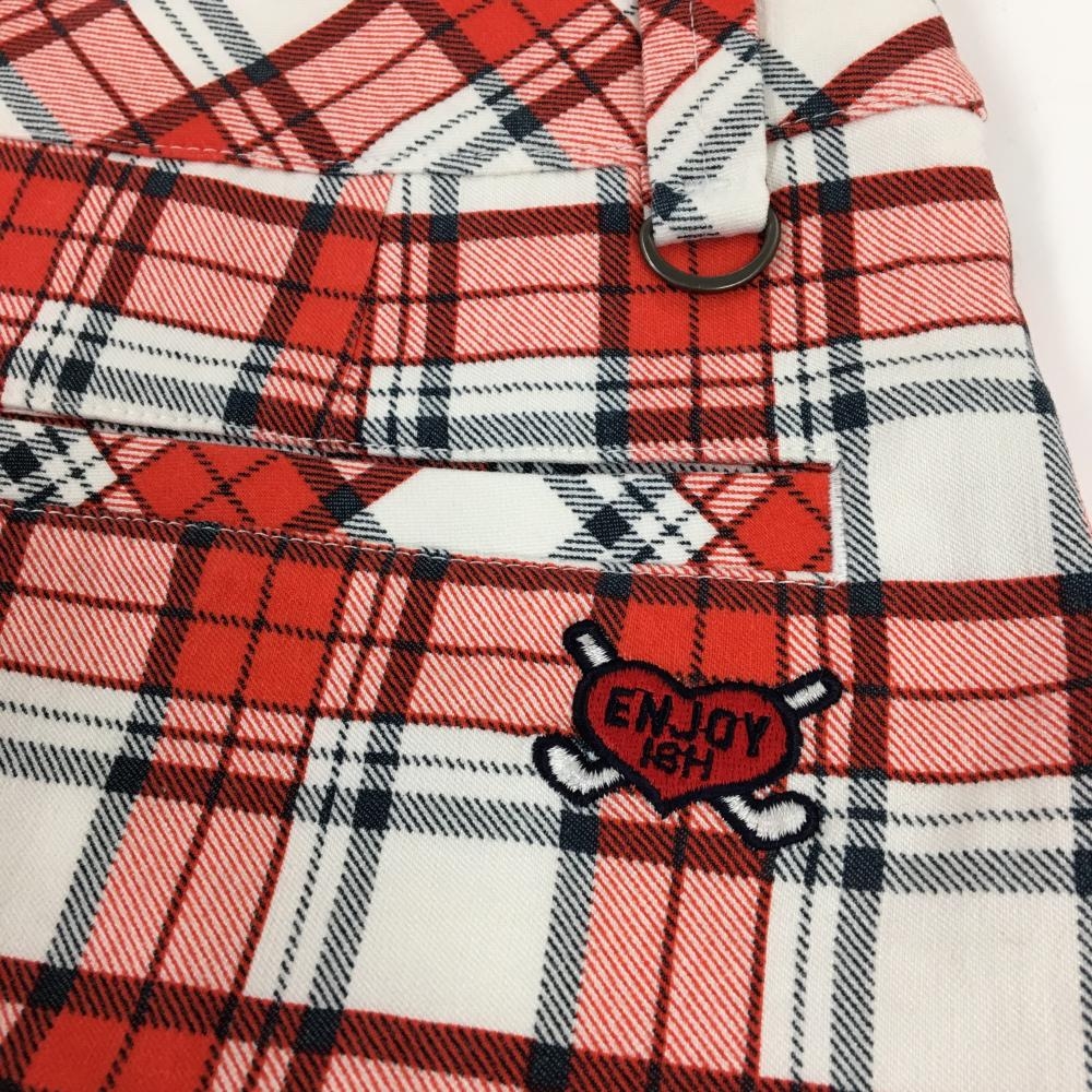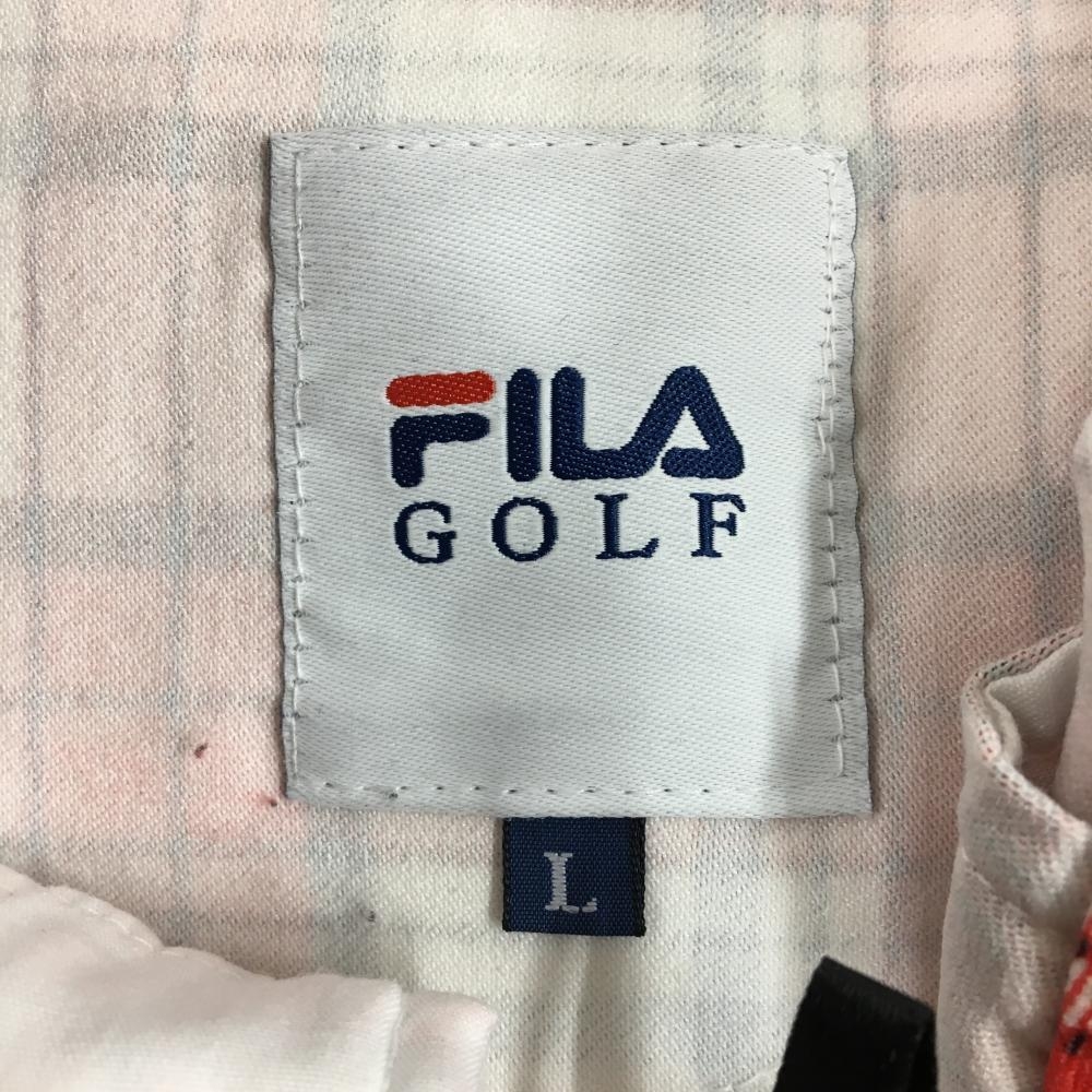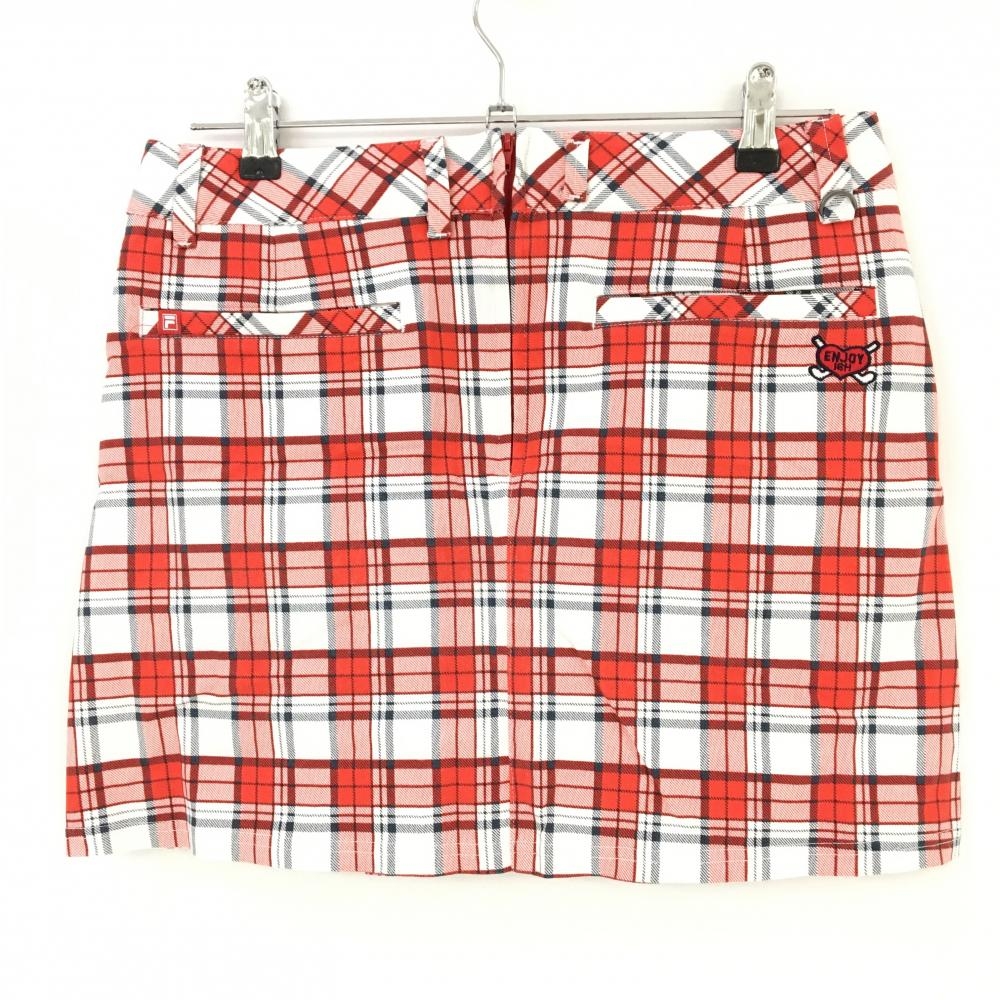【美品】フィラゴルフ ストレッチスカート レッド×白 チェック柄 一部プリーツ レディース L ゴルフウェア FILA GOLF