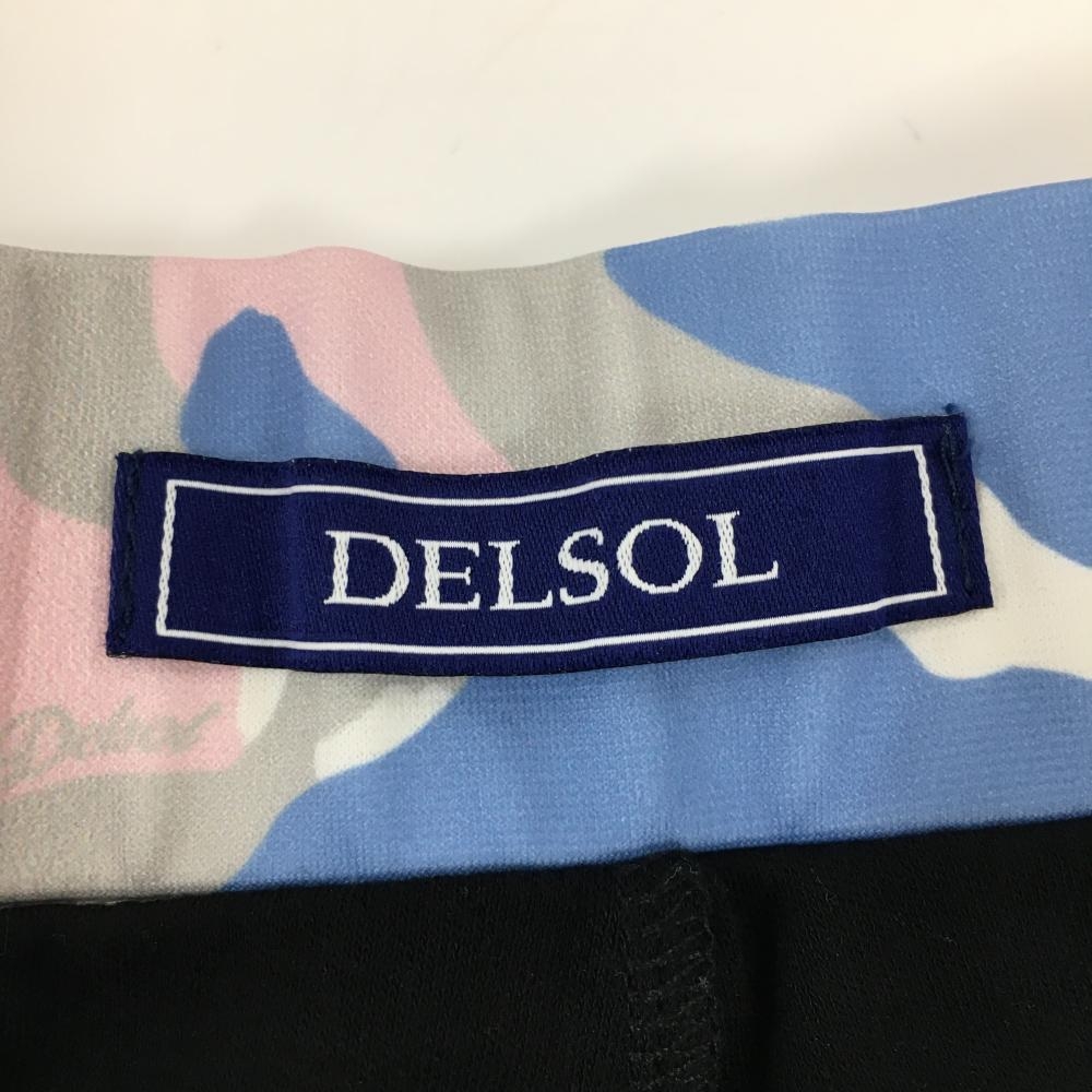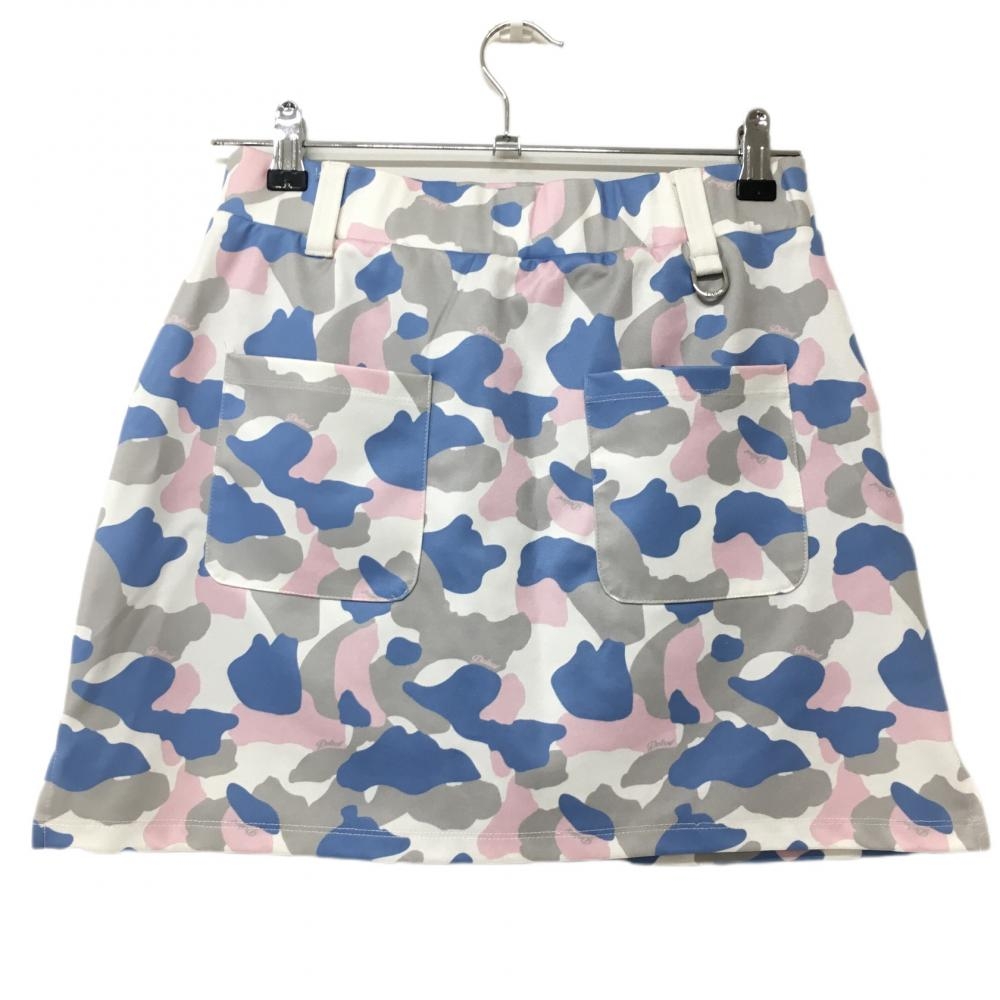 【美品】デルソル スカート 白×マルチカラー カモフラ 迷彩 総柄 ストレッチ 内側インナーパンツ レディース M ゴルフウェア DELSOL