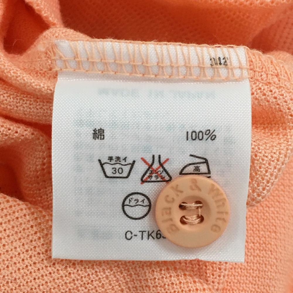 【美品】ブラックアンドホワイト 半袖ポロシャツ オレンジ×白 リブロゴプリント レディース M ゴルフウェア Black&White