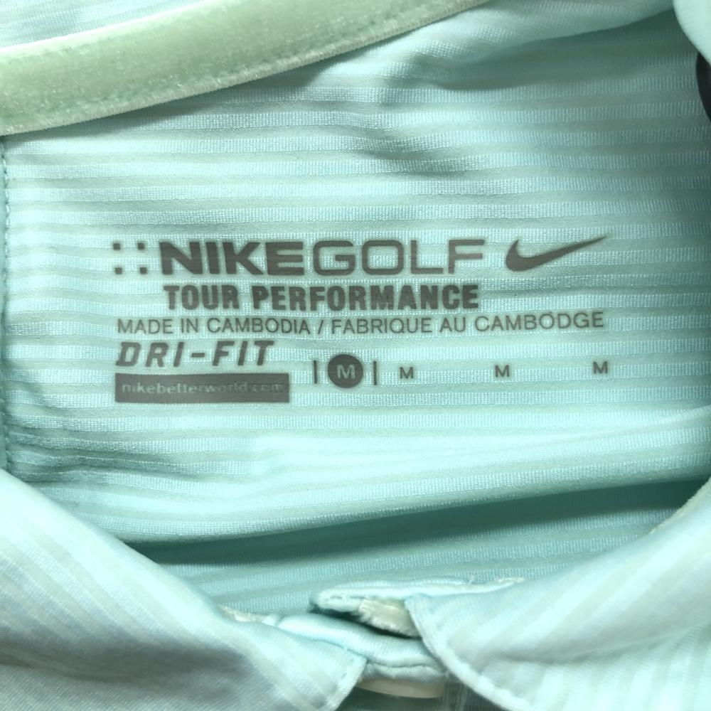 ナイキ 半袖ポロシャツ ライトグリーン系 ボーダー地模様 レディース M ゴルフウェア NIKE