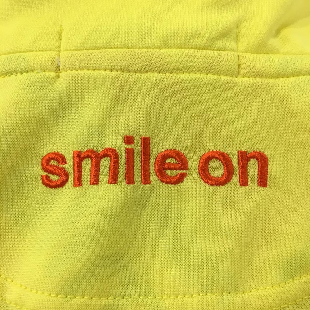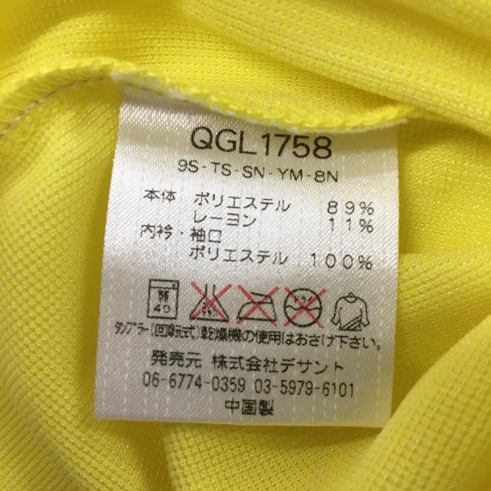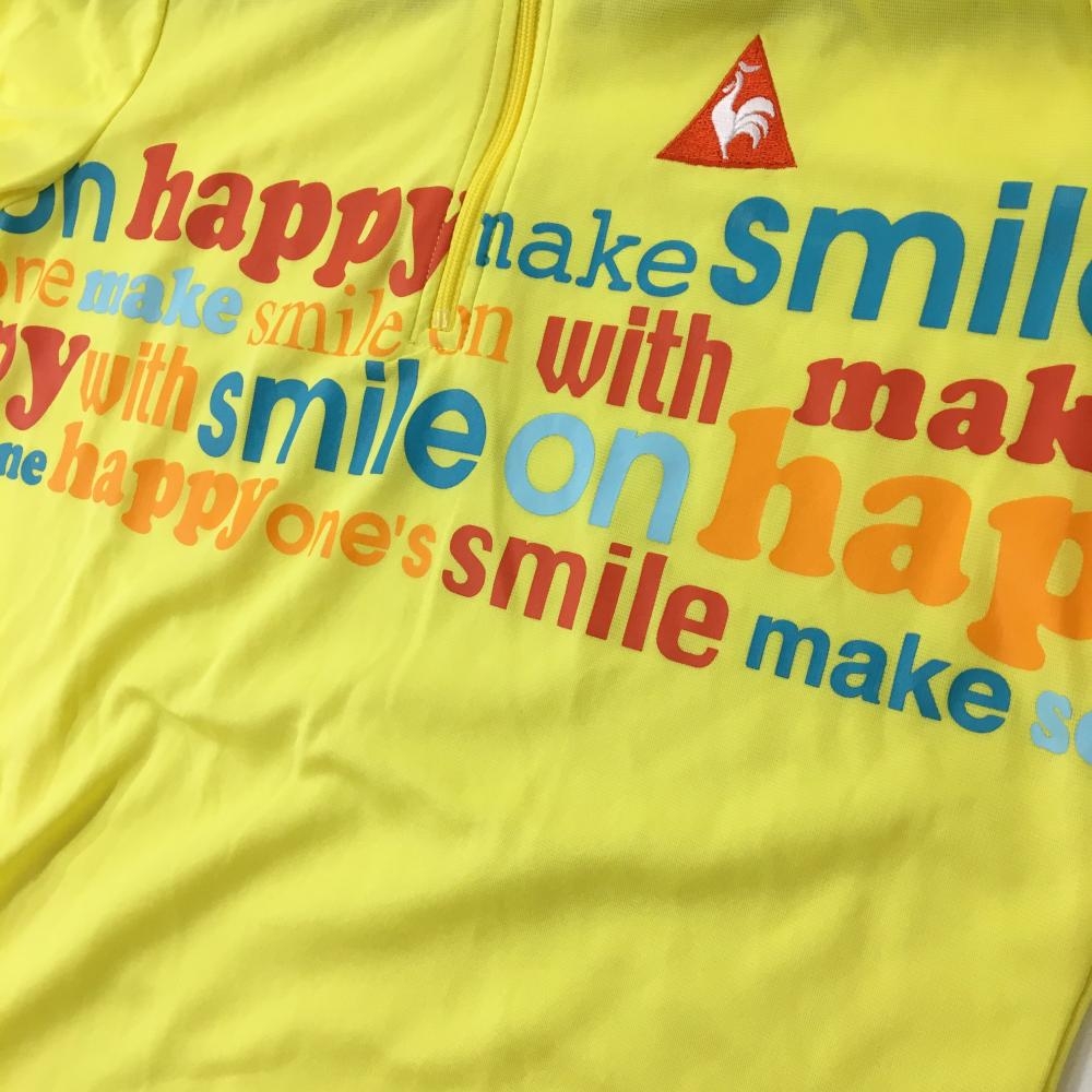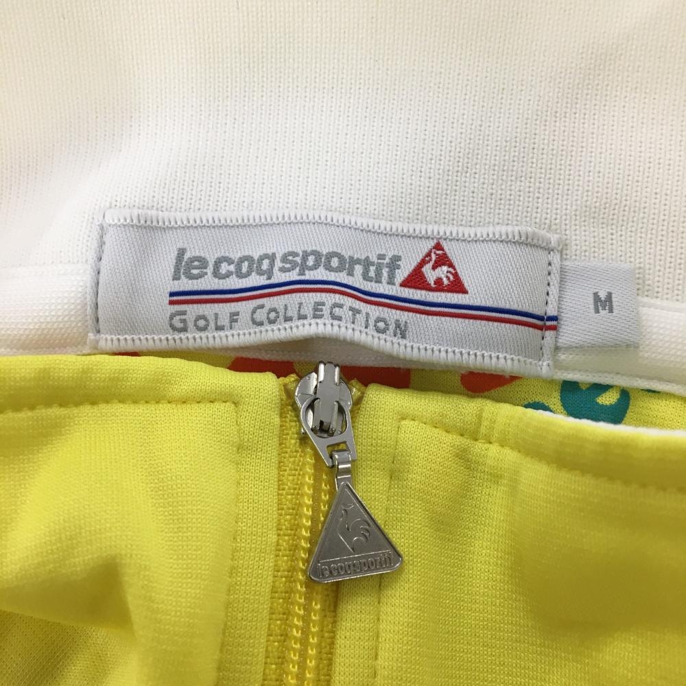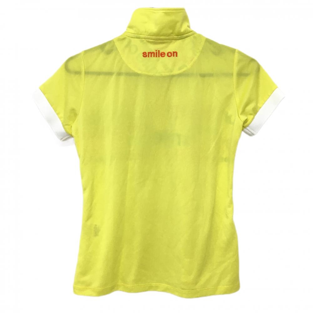 【超美品】ルコック 半袖ハイネックシャツ イエロー×マルチ ハーフジップ フロント英字 レディース M ゴルフウェア le coq sportif