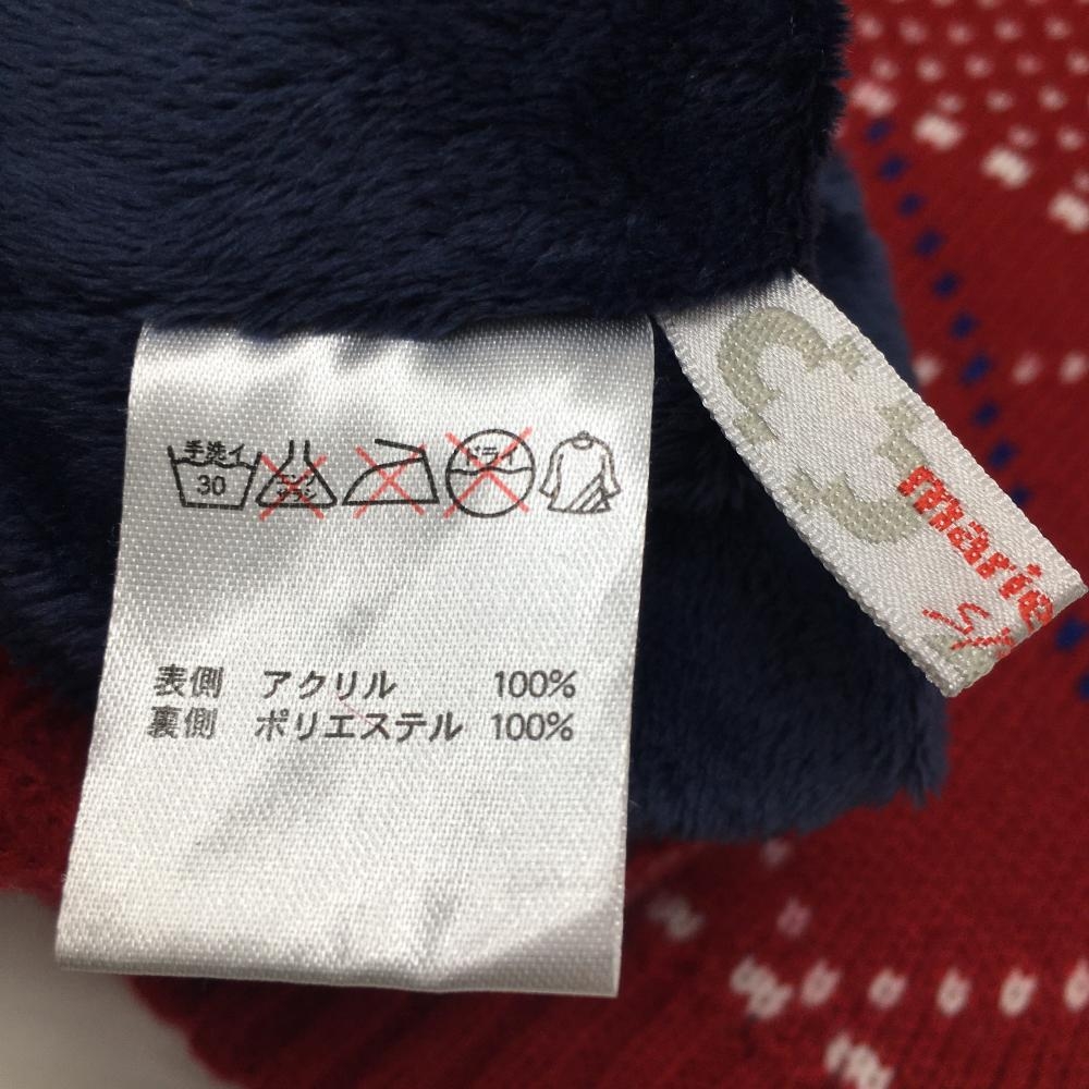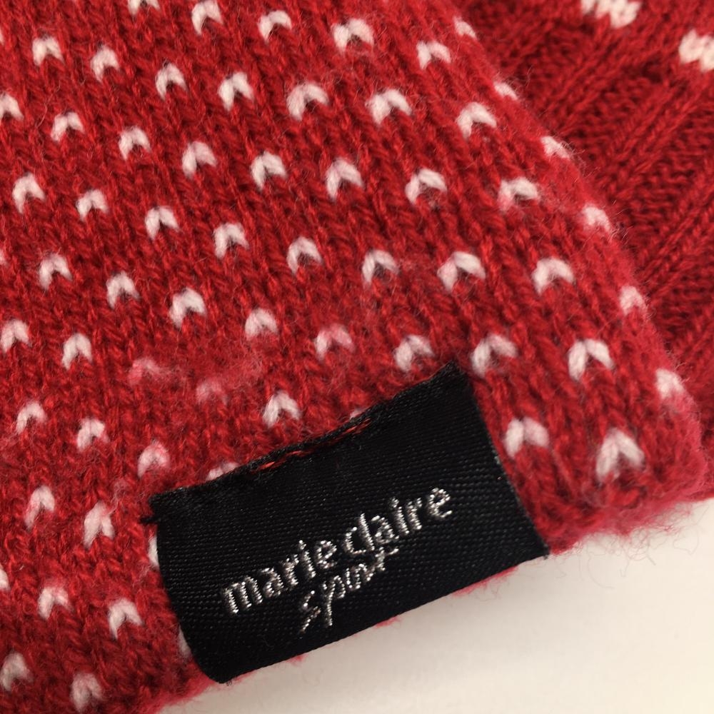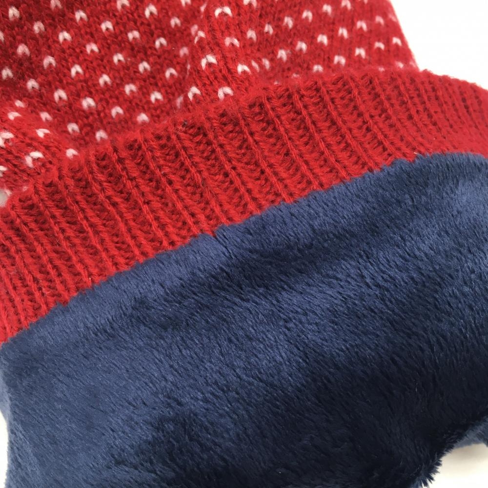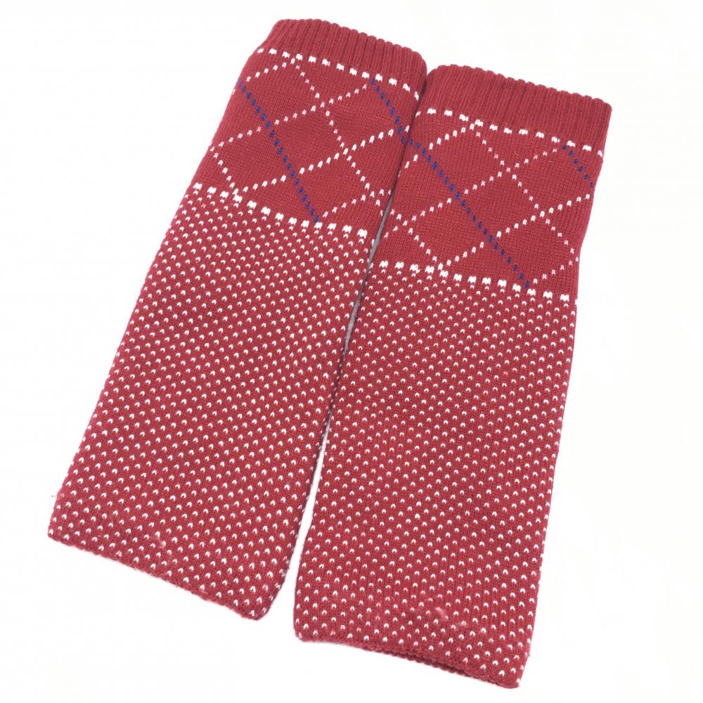 【美品】マリクレールスポール ニットレッグウォーマー レッド×白 ハート×格子 裏起毛 レディース ゴルフウェア marie claire