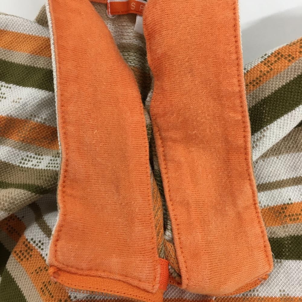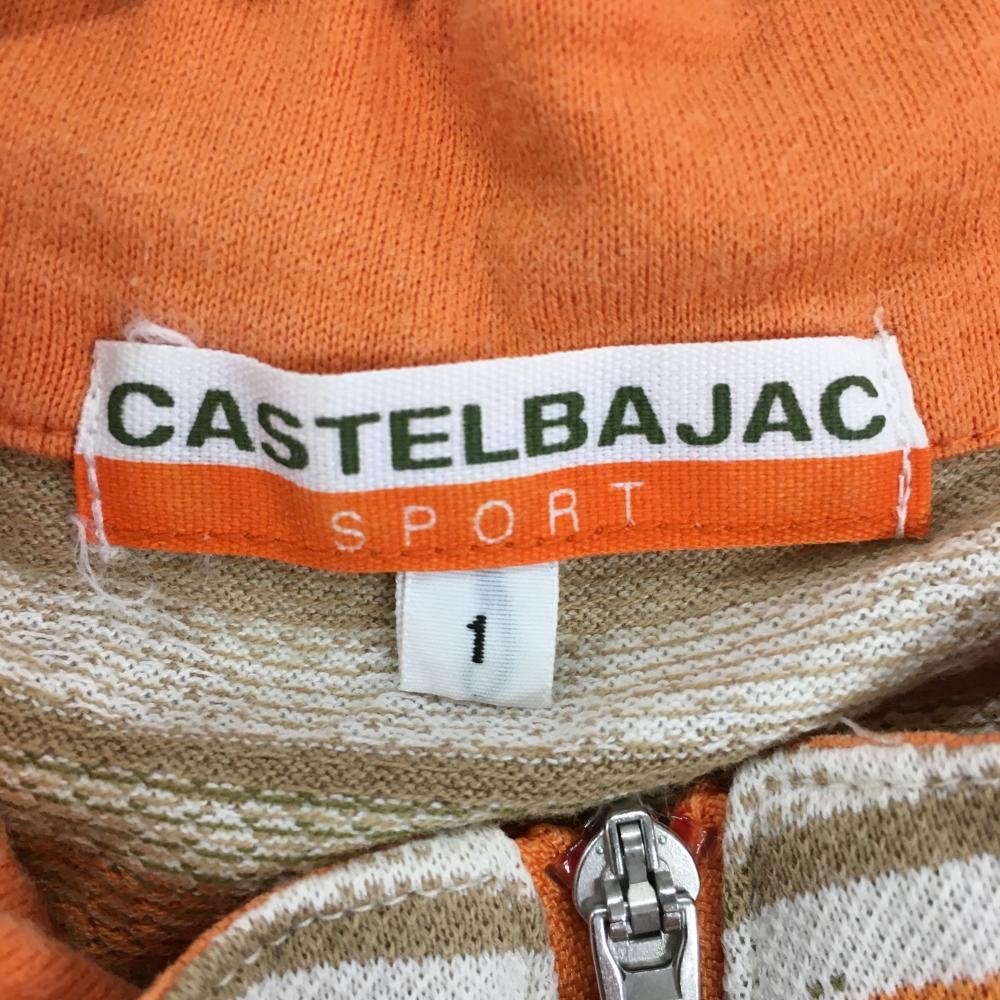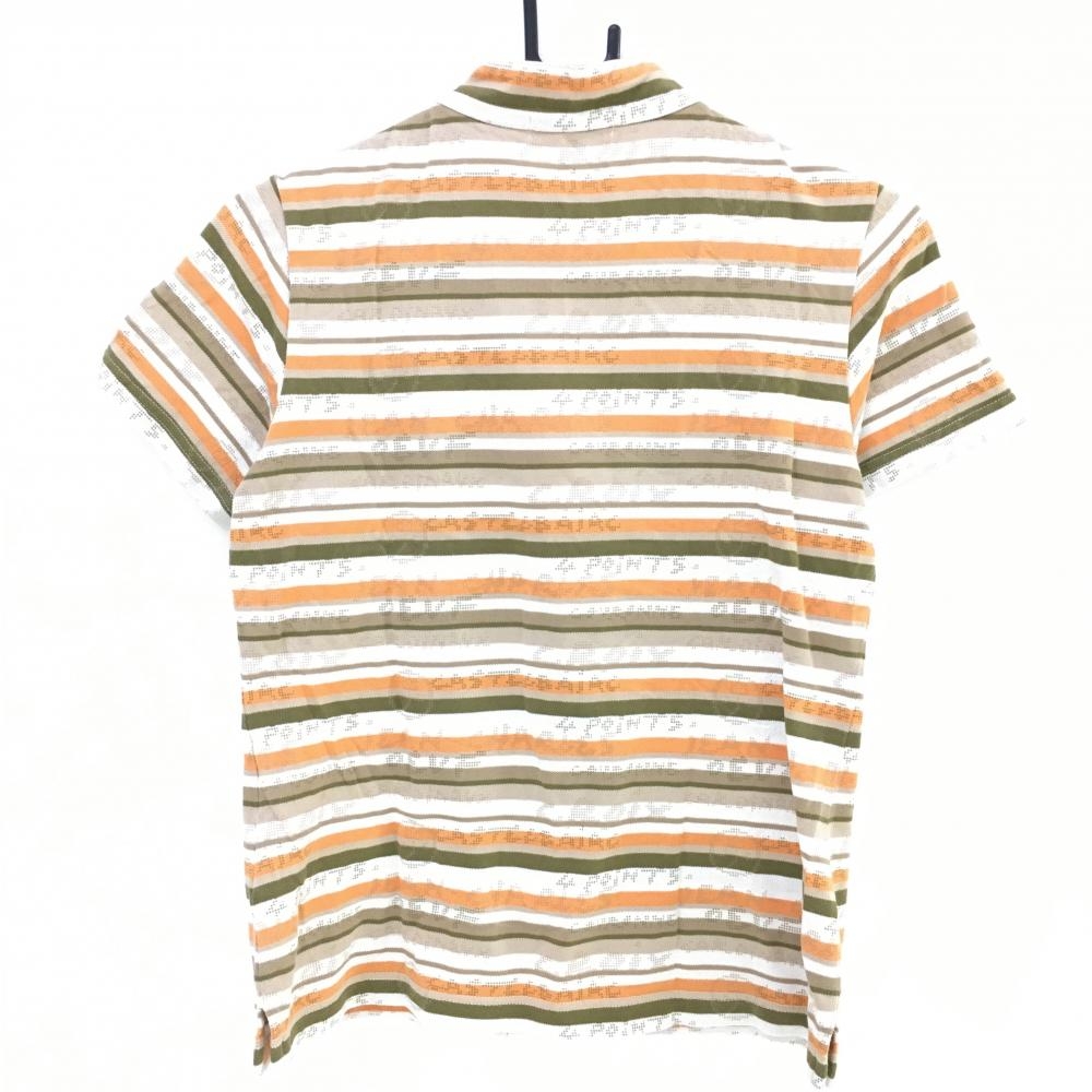 【超美品】カステルバジャック 半袖ハイネックシャツ オレンジ×ライトブラウン ボーダー柄 レディース 1 ゴルフウェア CASTELBAJAC