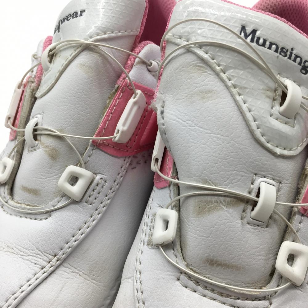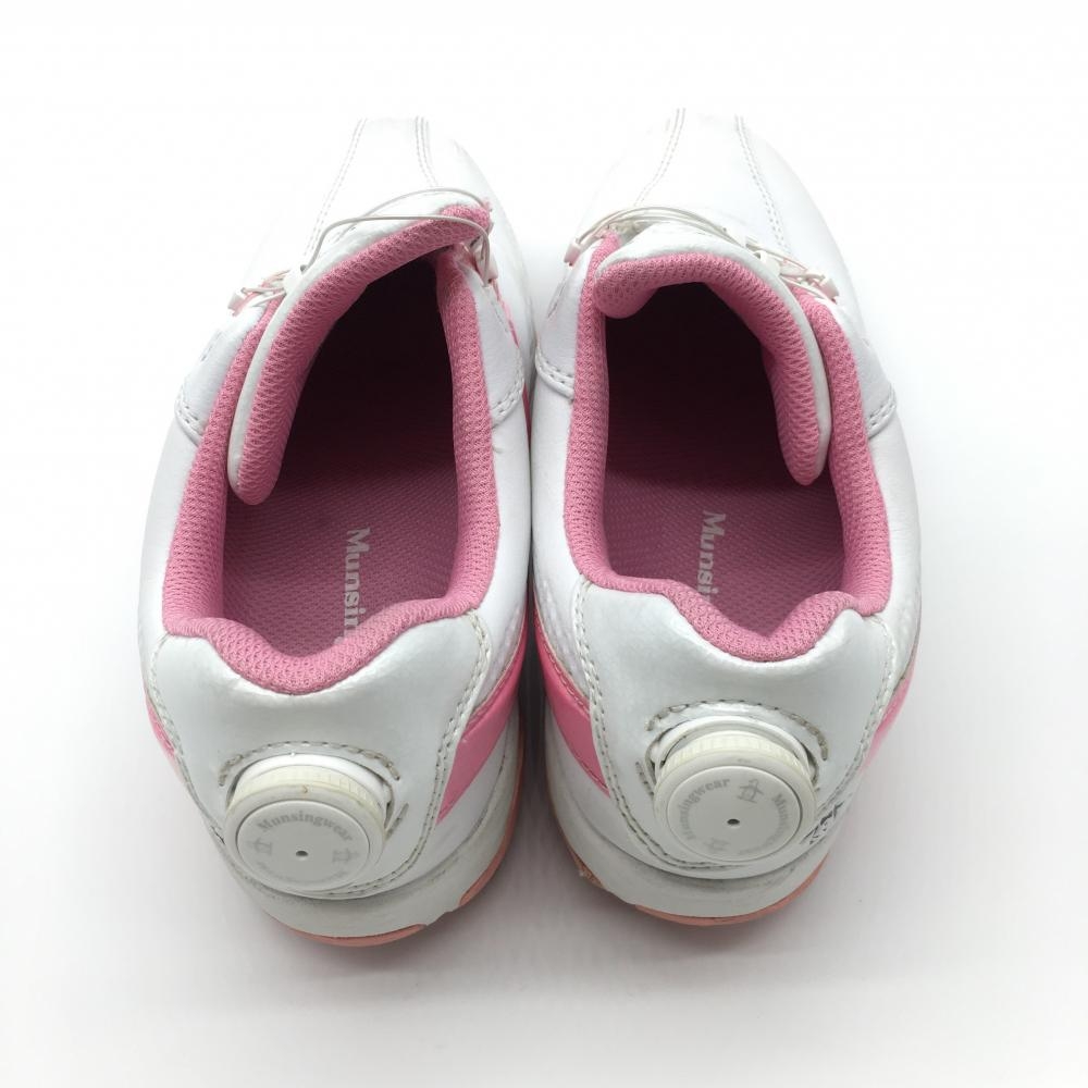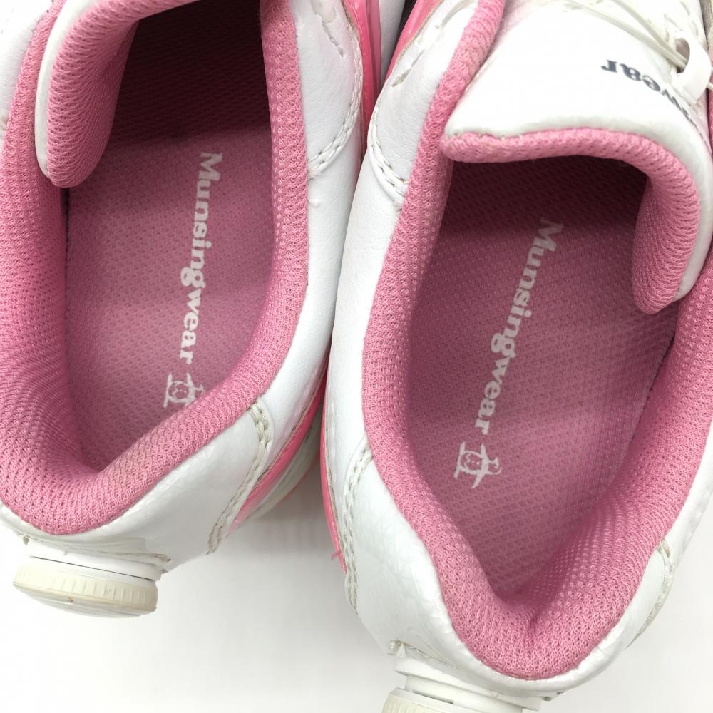 【美品】マンシングウェア ゴルフシューズ 白×ピンク BOA MQ3NJA01 ペンギン レディース 23.0 ゴルフウェア Munsingwear