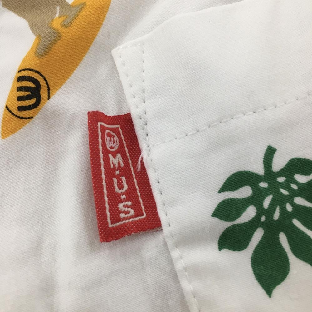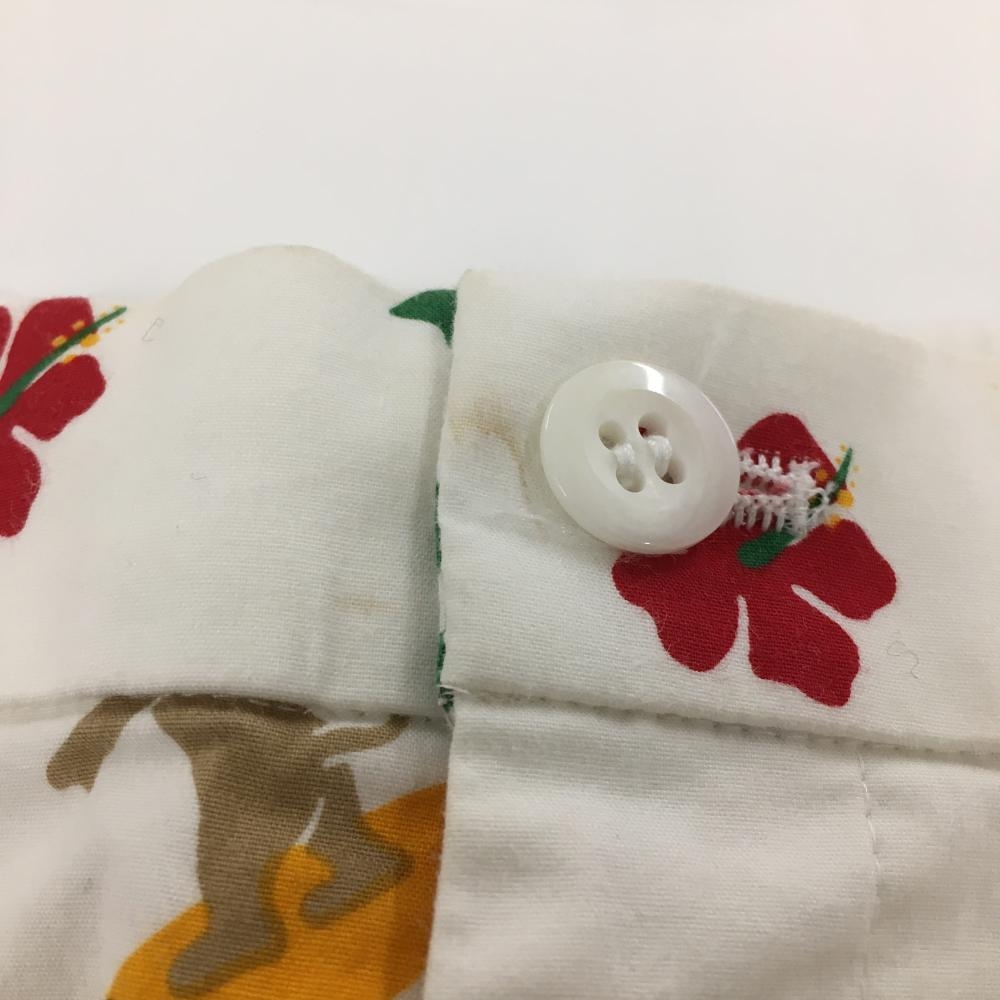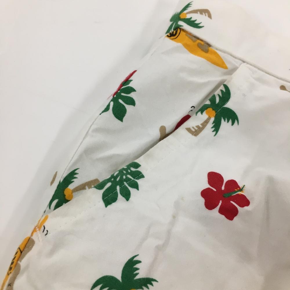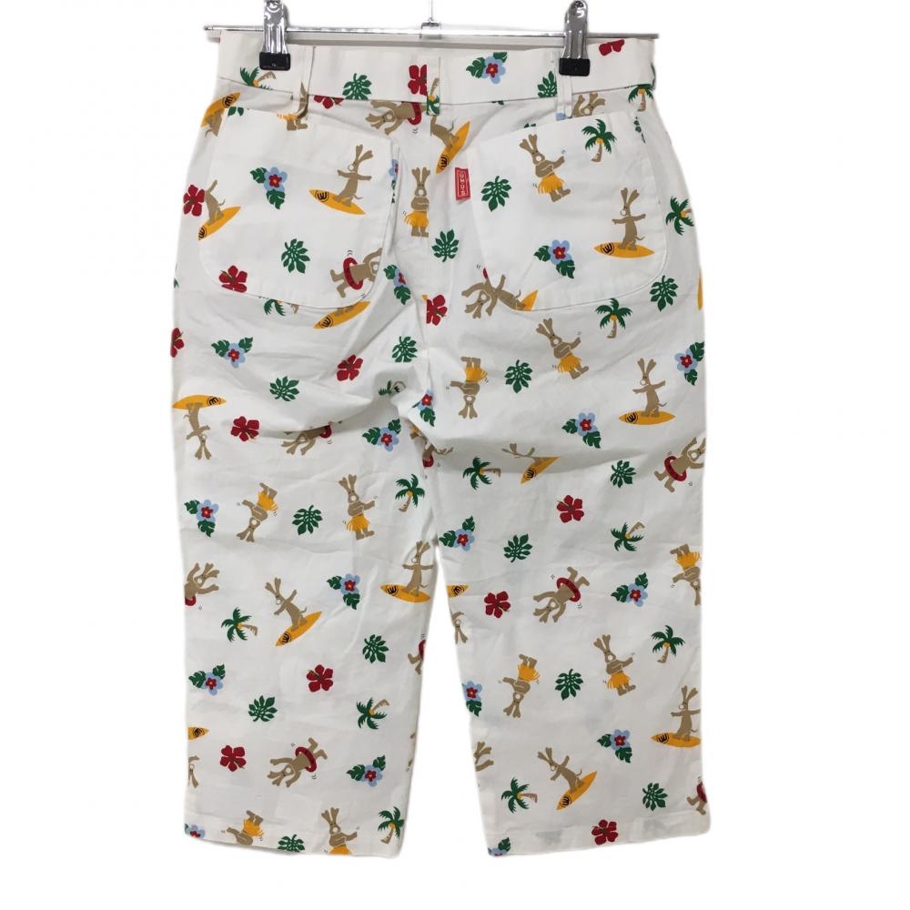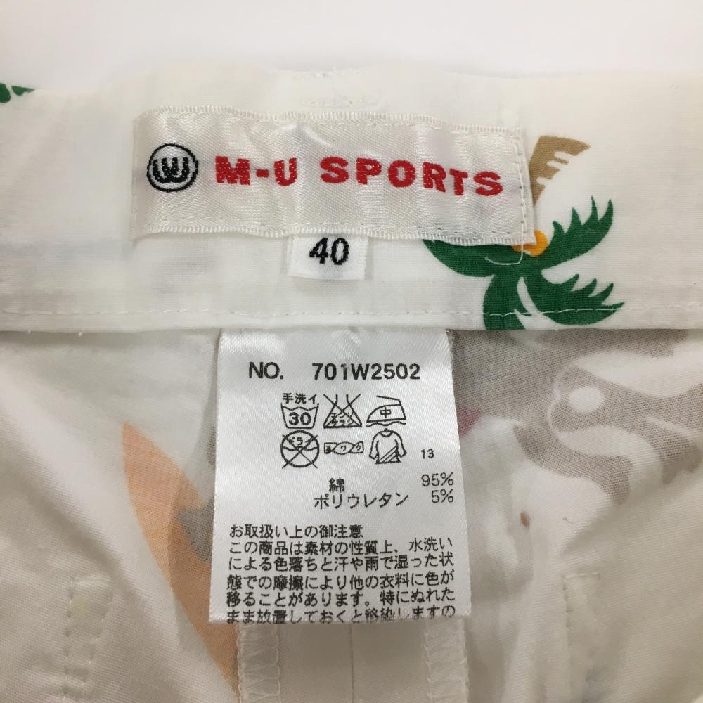 MUスポーツ 半端丈パンツ 白×マルチ 犬 ハイビスカス総柄 ストレッチ レディース 40(M) ゴルフウェア M・U SPORTS