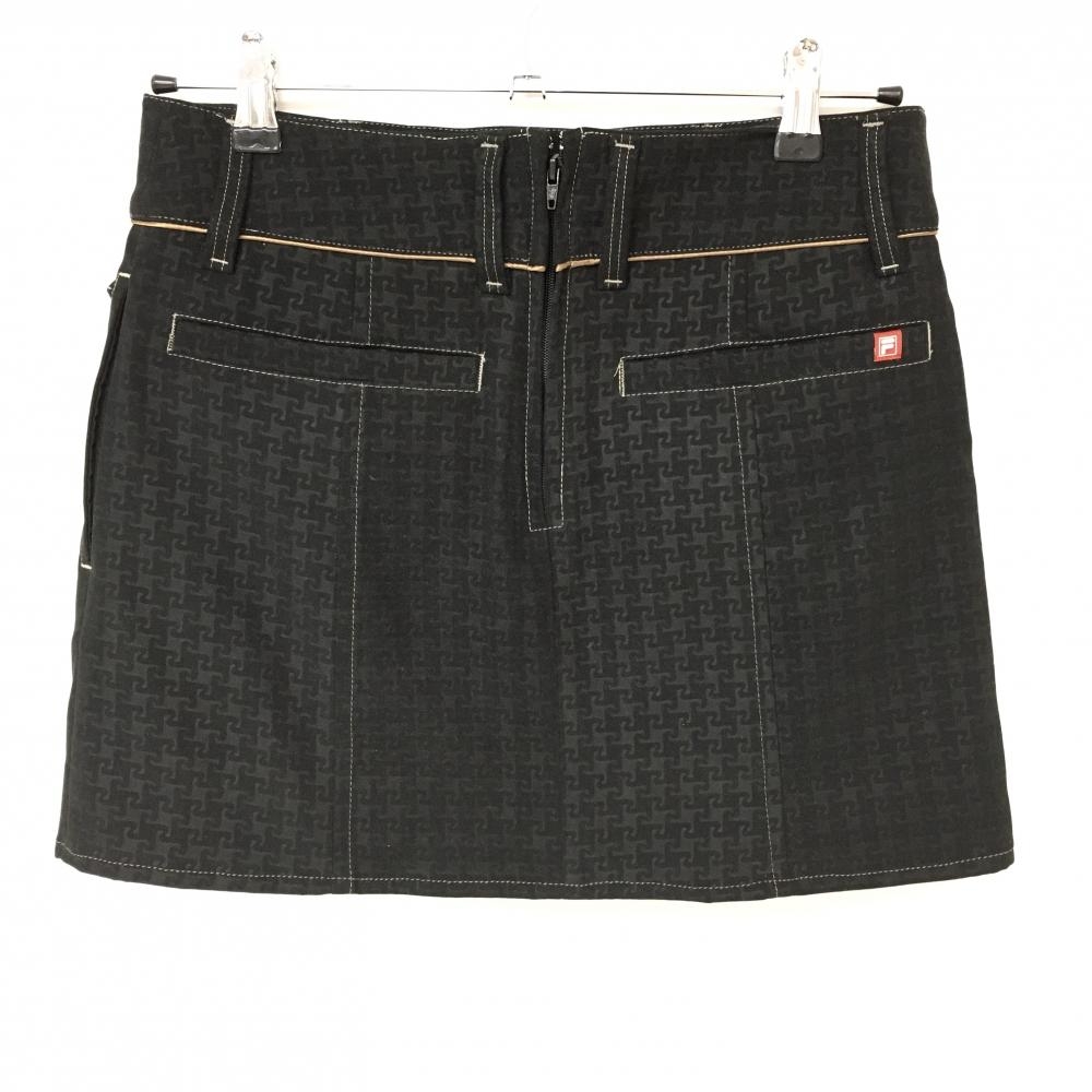 【美品】フィラゴルフ スカート 黒 総柄織生地 裏地付き レディース M ゴルフウェア FILA GOLF