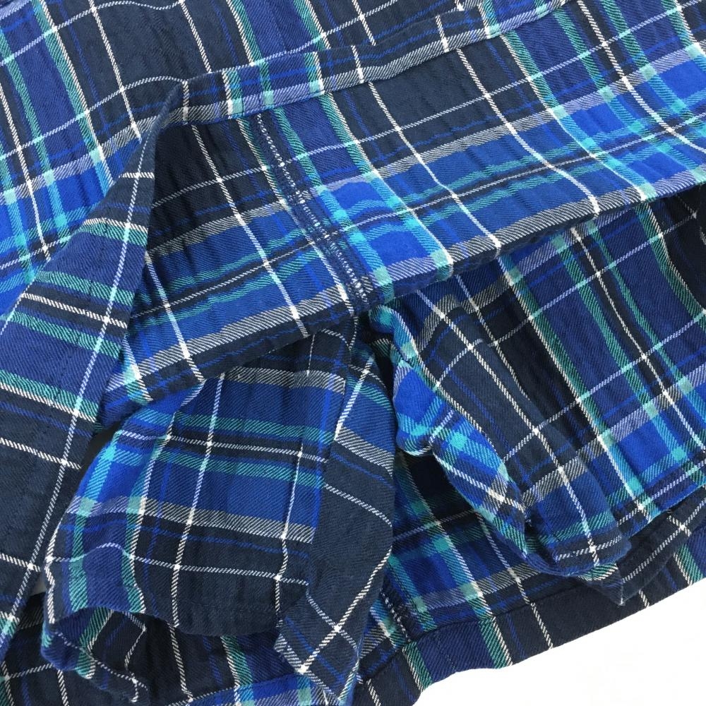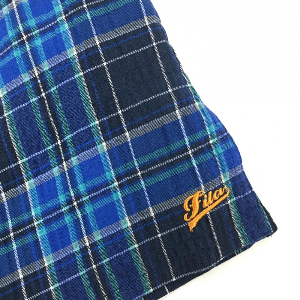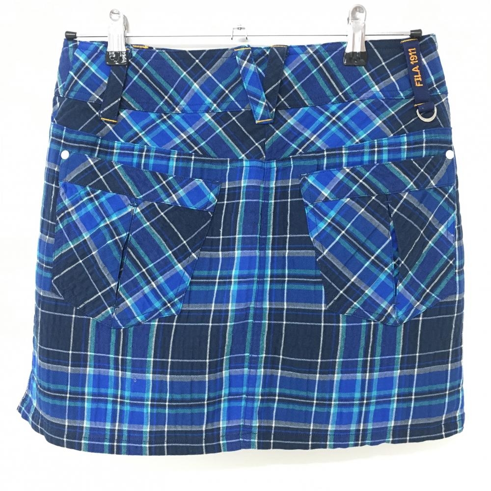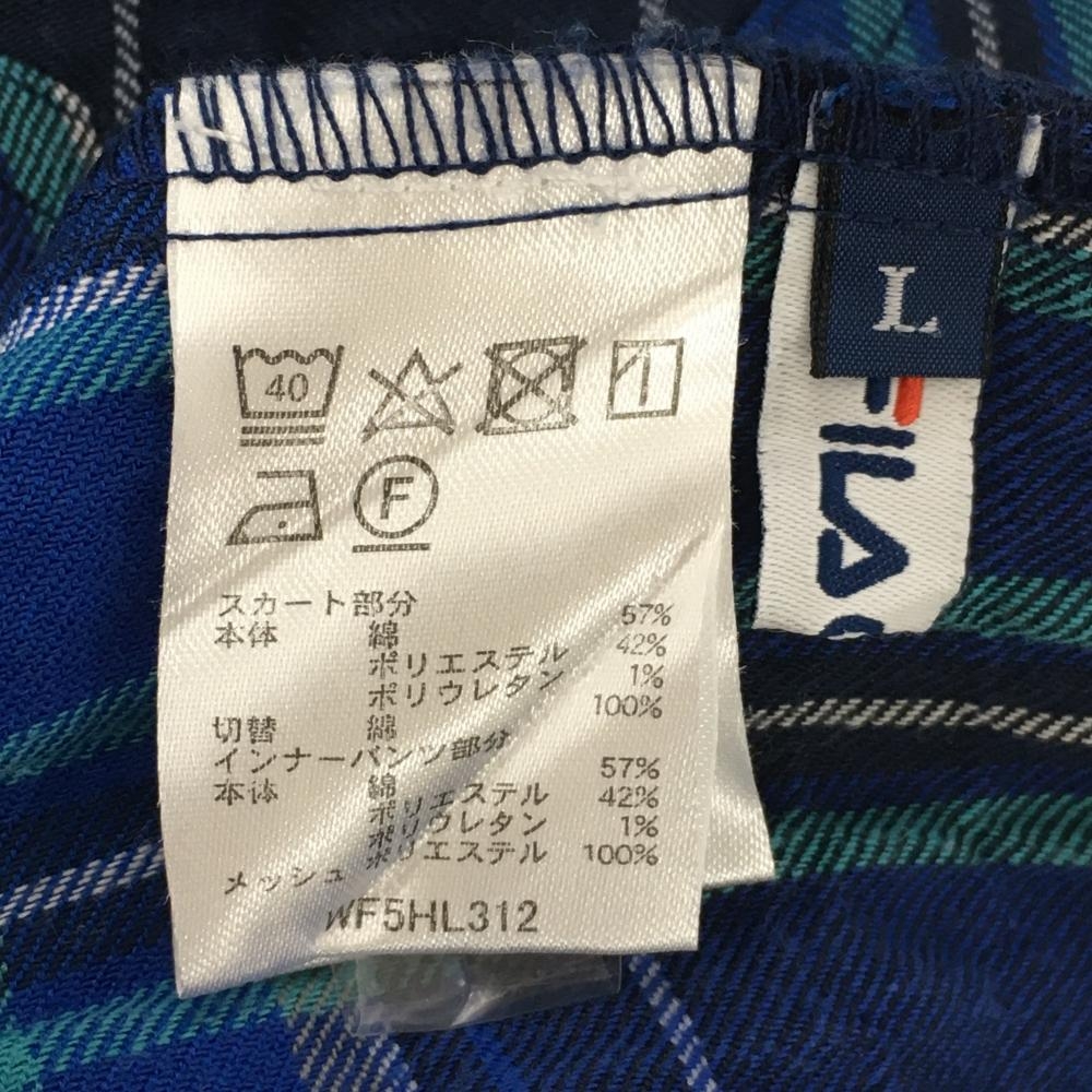 【美品】フィラゴルフ スカート ネイビー×ブルー チェック サッカー生地調 内側インナーパンツ レディース L ゴルフウェア FILA GOLF