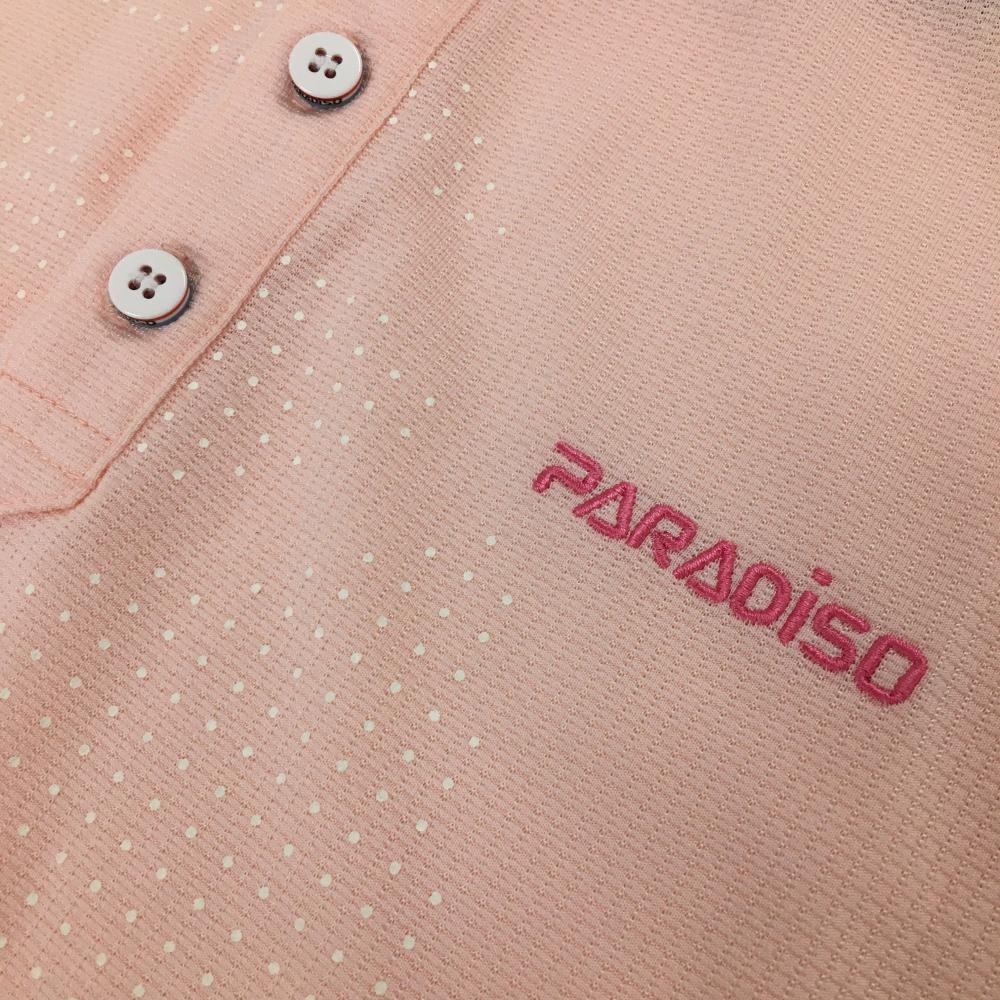 【美品】パラディーゾ 半袖ポロシャツ ピンク×白 前ピンドット メンズ M ゴルフウェア Paradiso