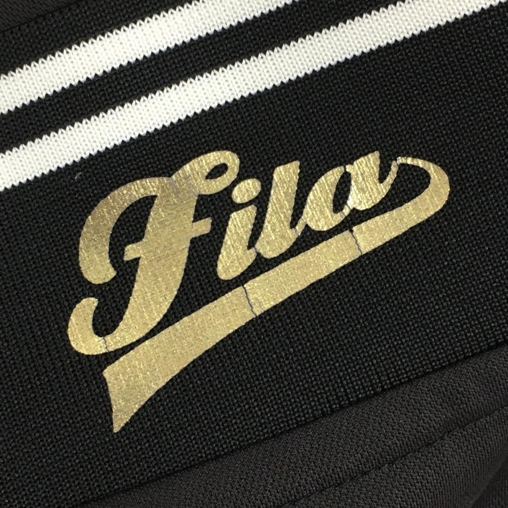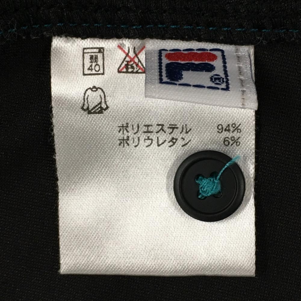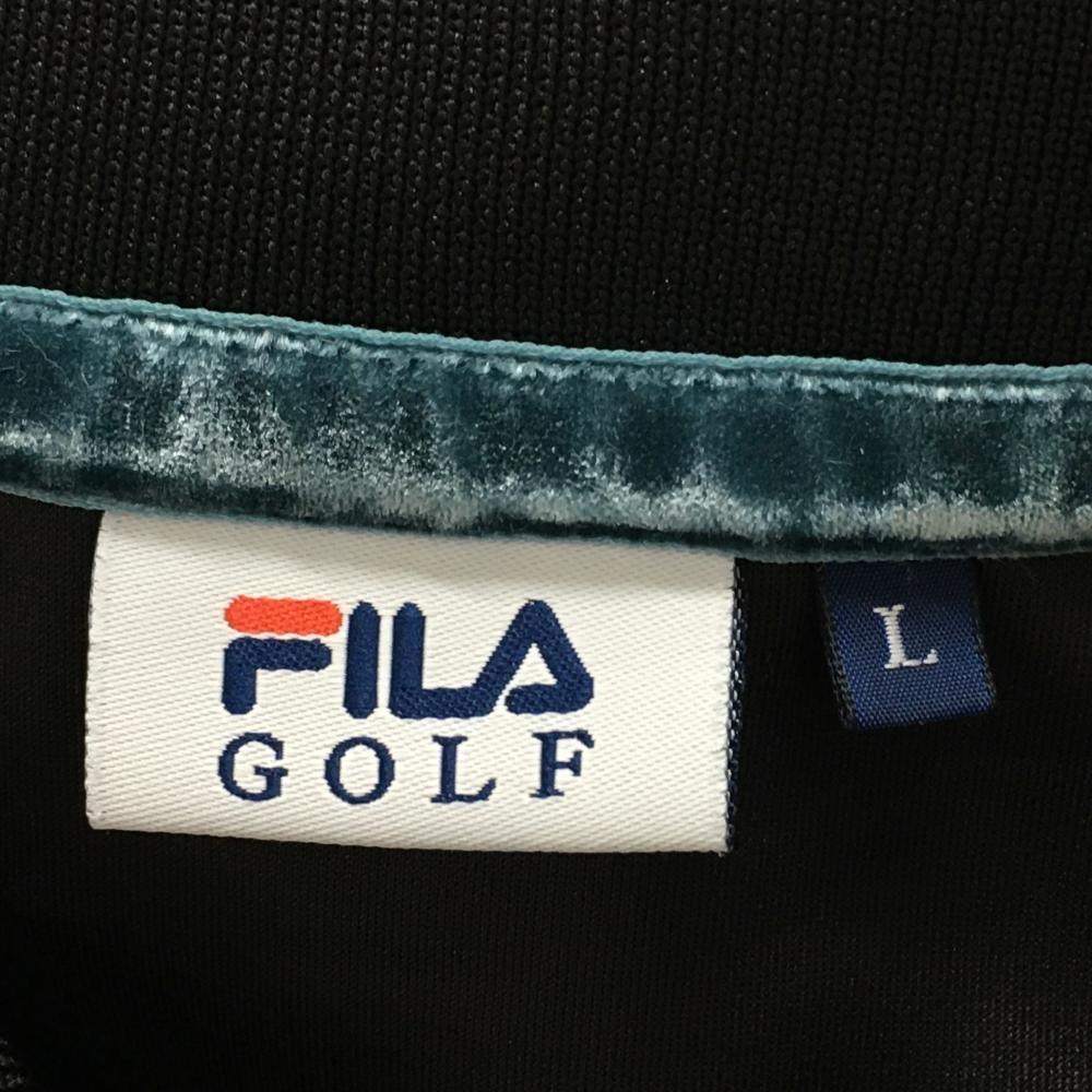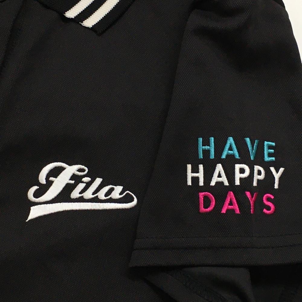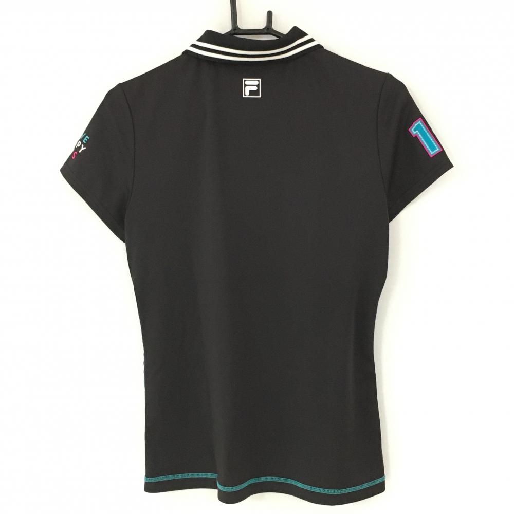 【美品】フィラゴルフ 半袖ポロシャツ 黒×白 サイドベロア調ブルーライン 襟裏ロゴ レディース L ゴルフウェア FILA GOLF