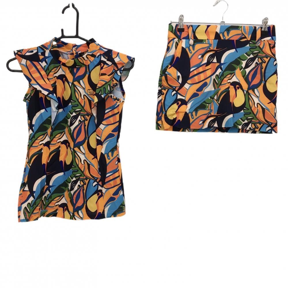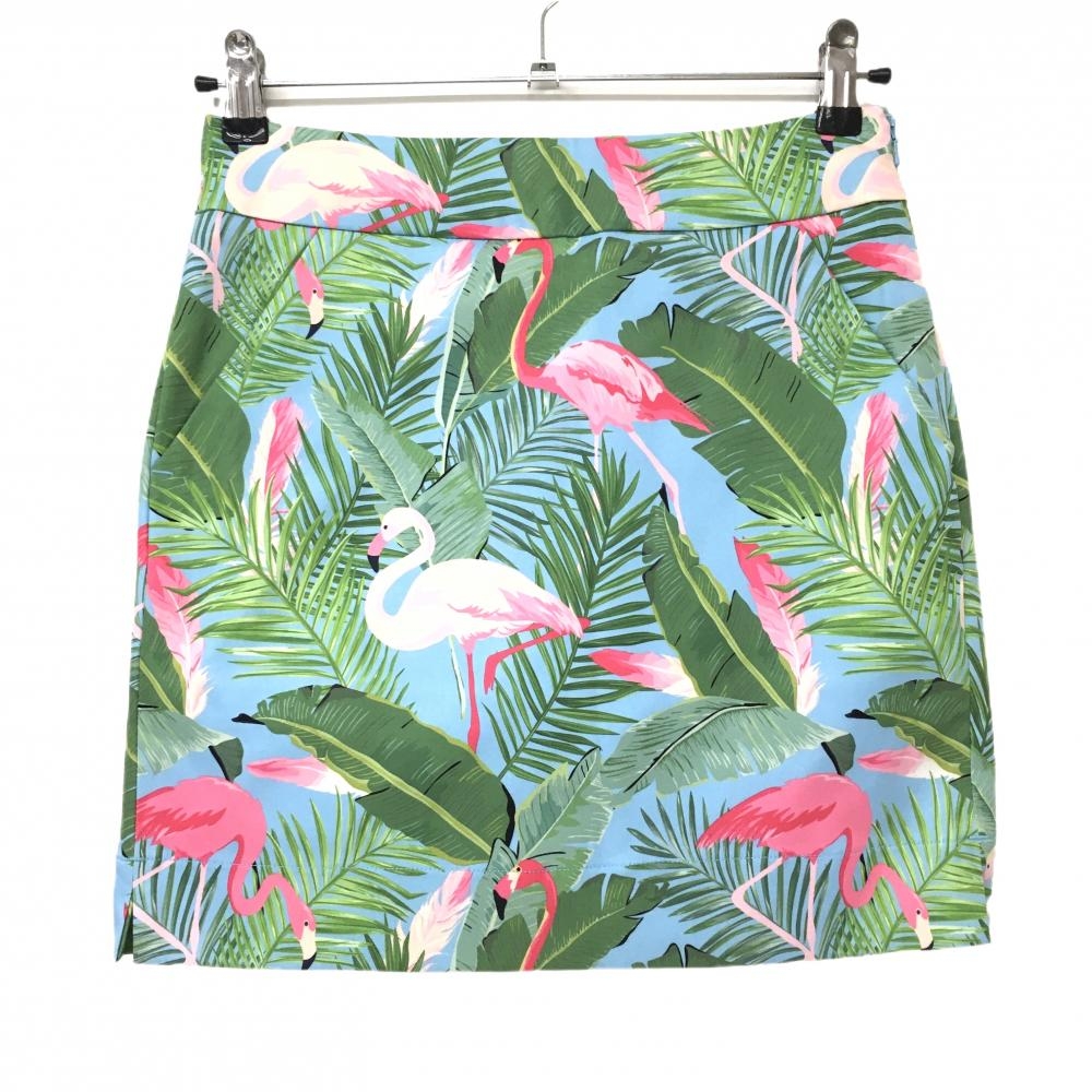【超美品】ラウドマウス スカート オレンジ×ネイビー×ブルー トロピカルトゥーカンズ 総柄 レディース S ゴルフウェア LOUDMOUTH