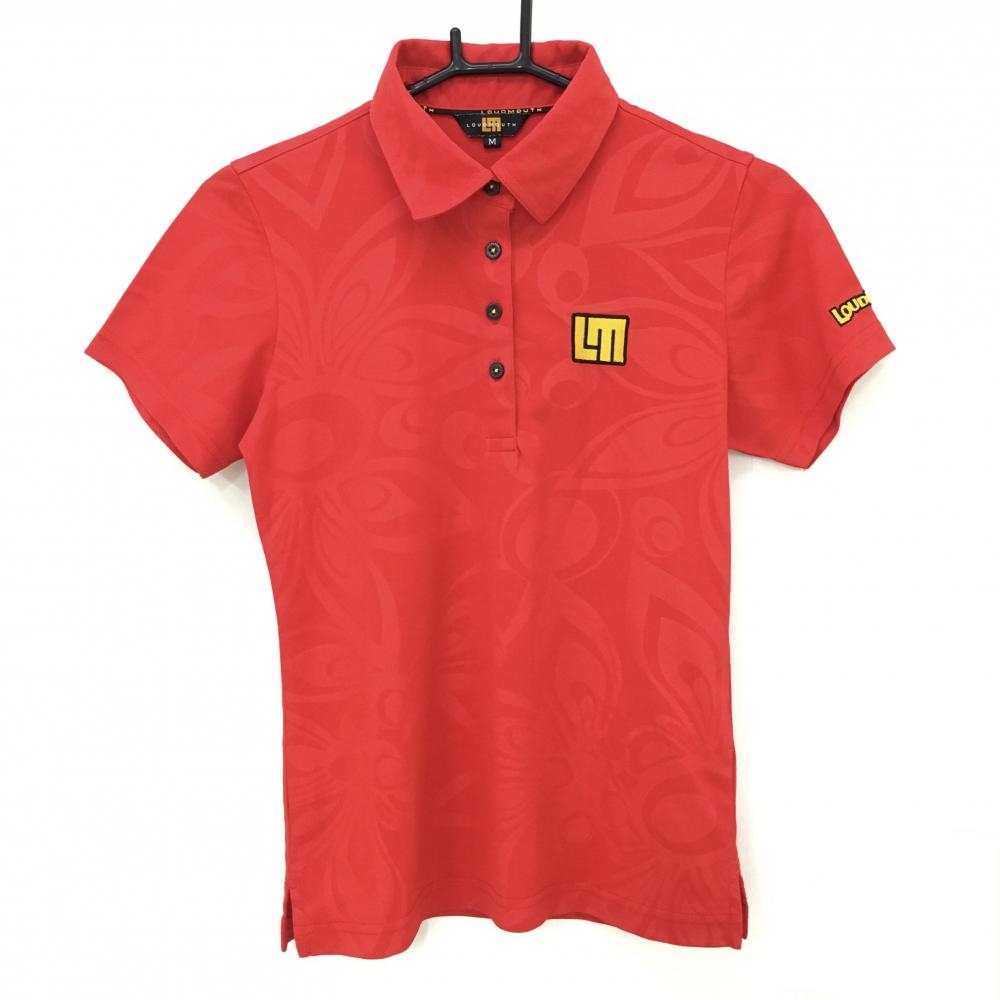 【超美品】ラウドマウス 半袖ハイネックシャツ 白×レッド 星柄 ロゴ総柄 レディース S ゴルフウェア LOUDMOUTH