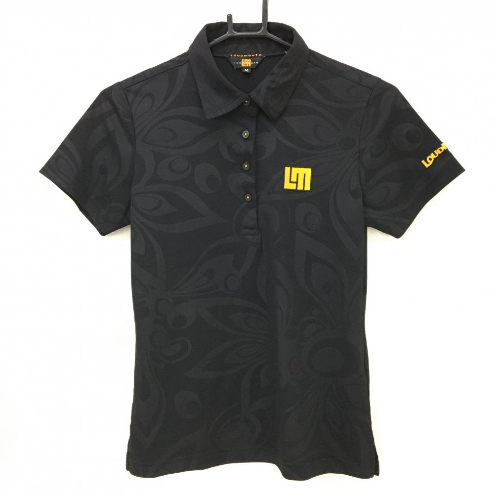 【超美品】ラウドマウス 半袖ポロシャツ 黒×オレンジイエロー 総柄 シャガデリック ロゴ刺しゅう レディース S ゴルフウェア LOUDMOUTH