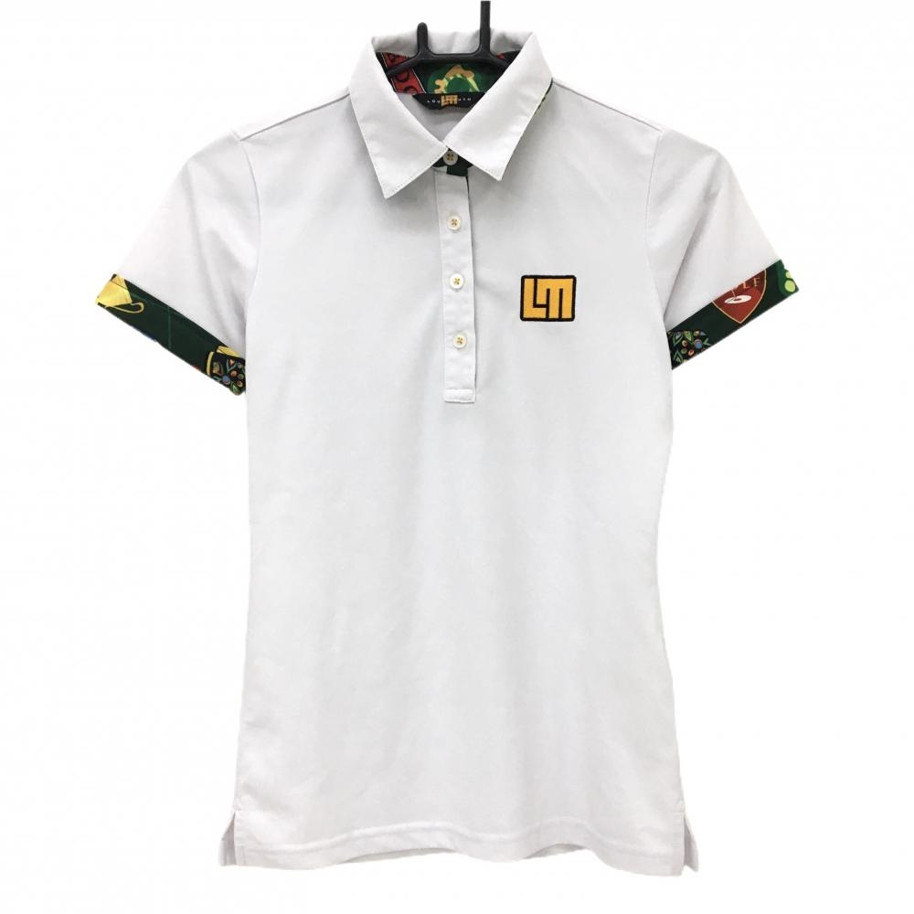 【美品】ラウドマウス 半袖ポロシャツ 白 地模様 袖ワッペン レディース LL ゴルフウェア LOUDMOUTH