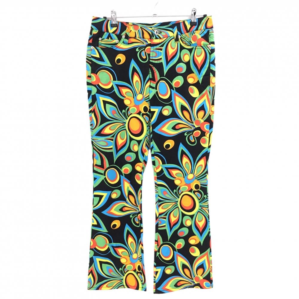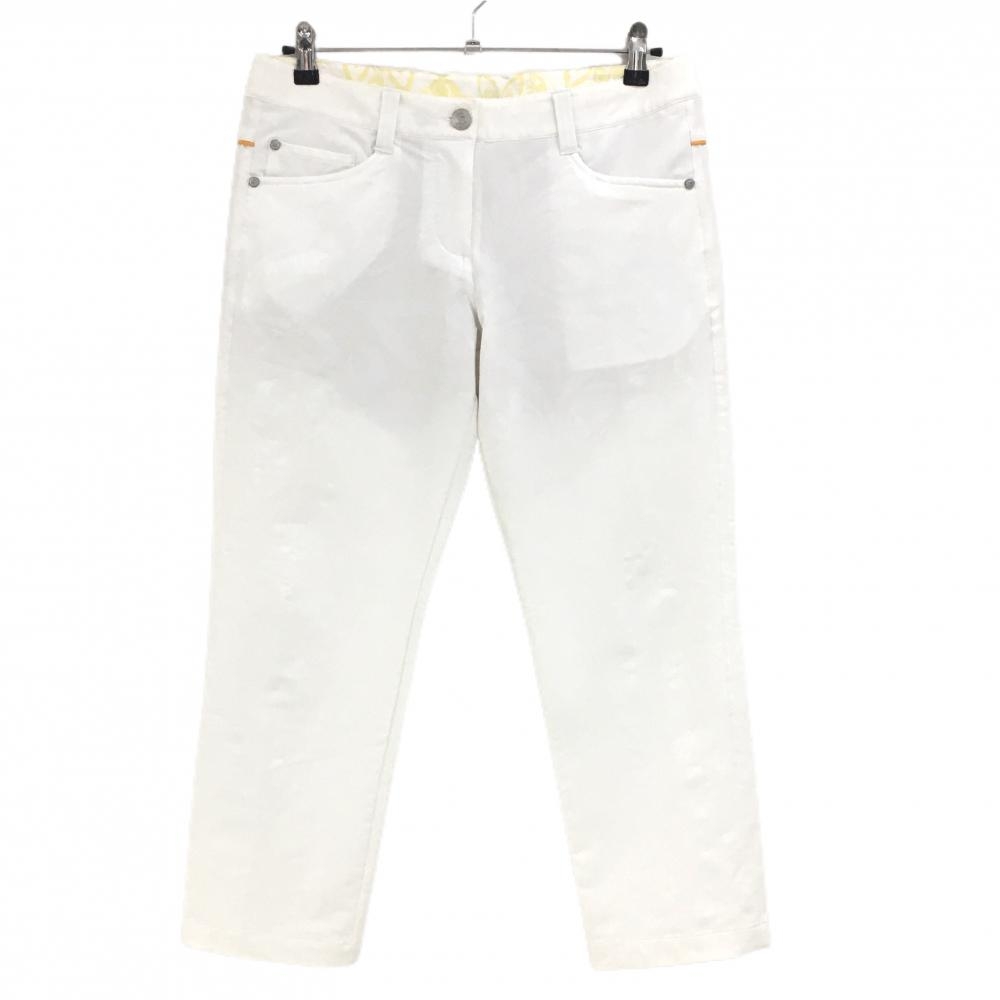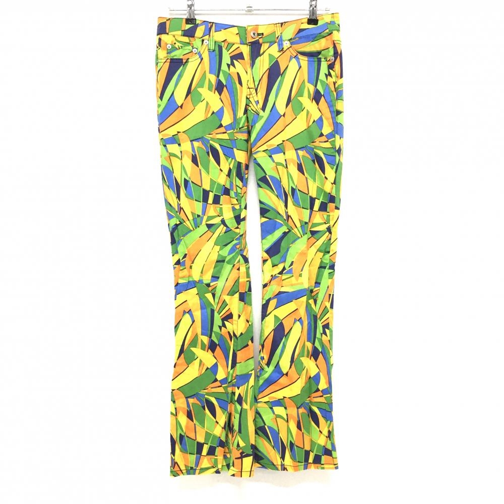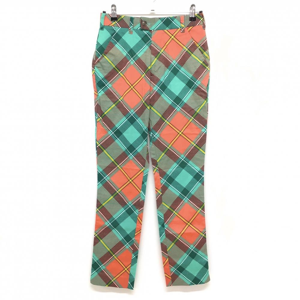 【美品】ラウドマウス パンツ マルチカラー 総柄 バックロゴ 裾裏薄汚れ レディース US-4(XL) ゴルフウェア LOUDMOUTH