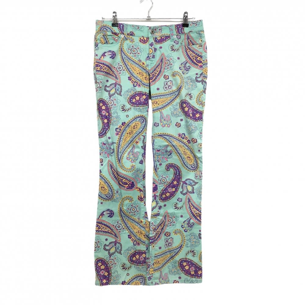 【美品】ラウドマウス パンツ エメラルドグリーン×パープル 総柄 ペイズリー風 レディース US-6 ゴルフウェア LOUDMOUTH
