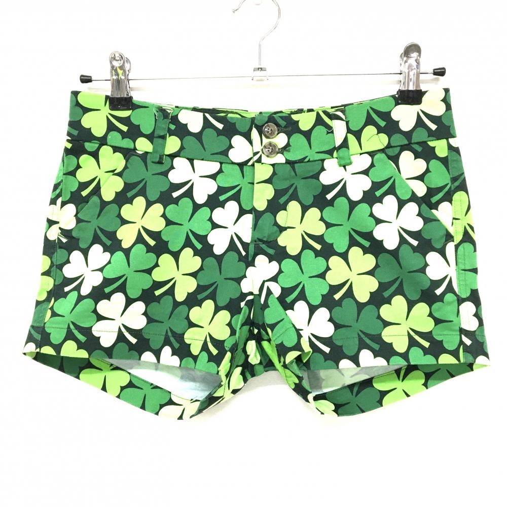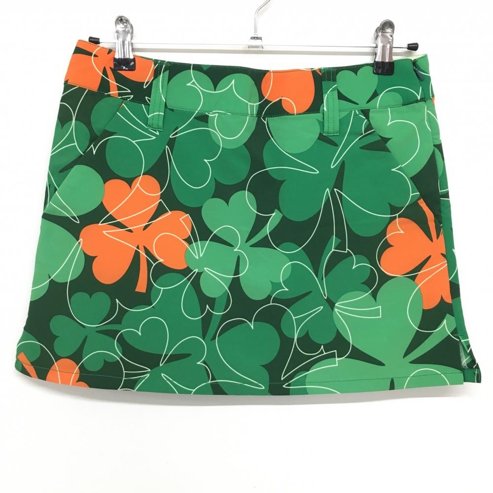 【超美品】ラウドマウス スカート グリーン×オレンジ クローバー総柄 ラッキーオレンジ レディース LL ゴルフウェア LOUDMOUTH