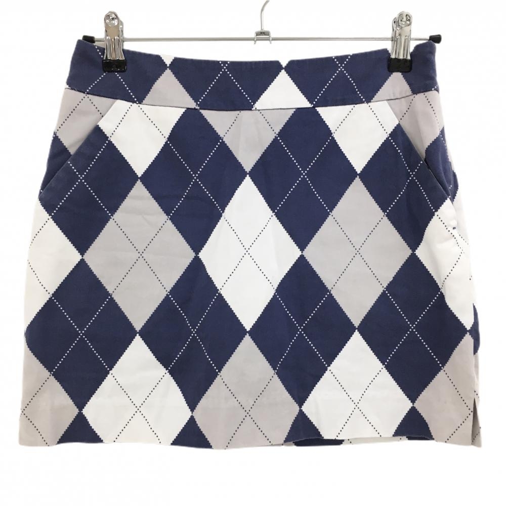 【美品】ラウドマウス スカート ライトブルー×ネイビー アーガイル柄 ロゴ刺しゅう レディース 12 ゴルフウェア 大きいサイズ LOUDMOUTH