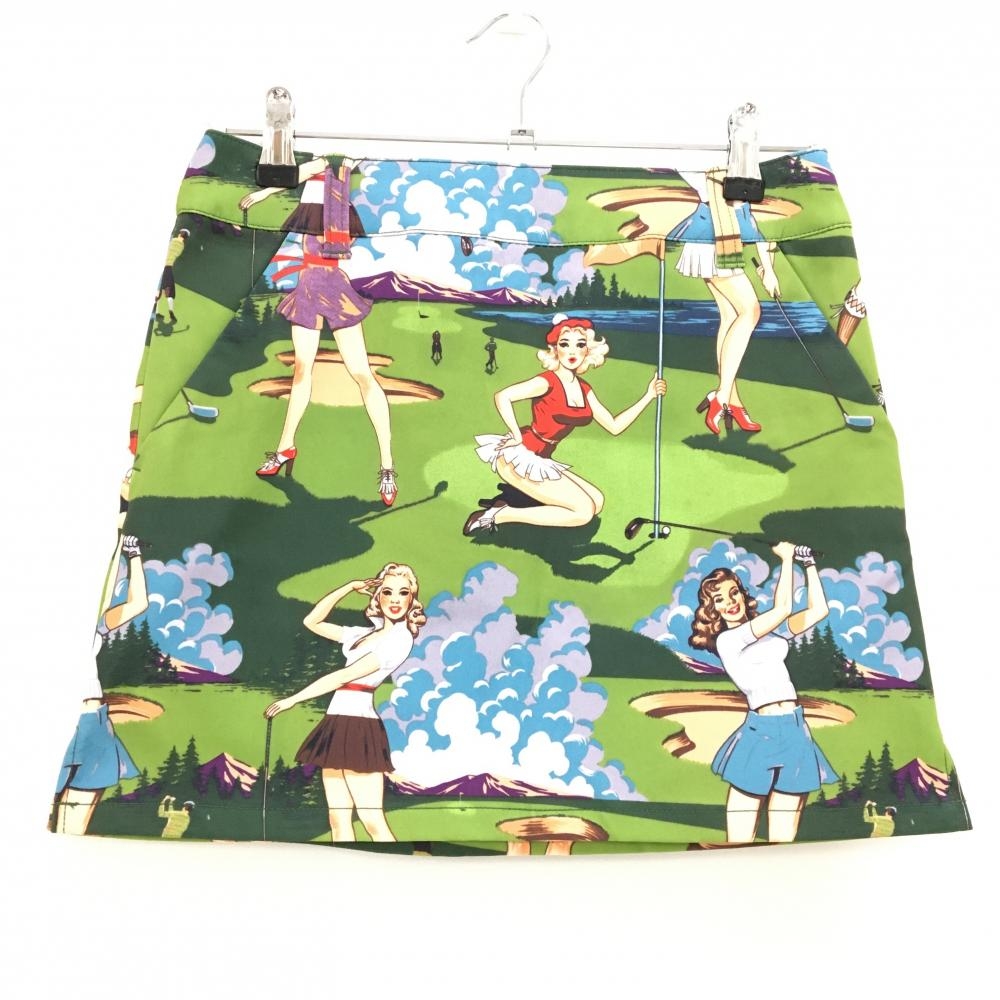 ラウドマウス スカート グリーン×ピンク 総柄 内側インナーパンツ レディース S ゴルフウェア LOUDMOUTH