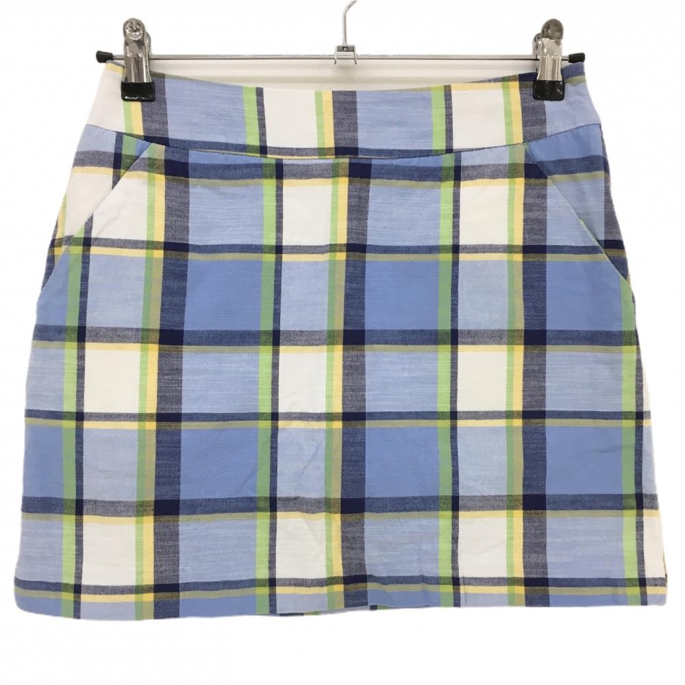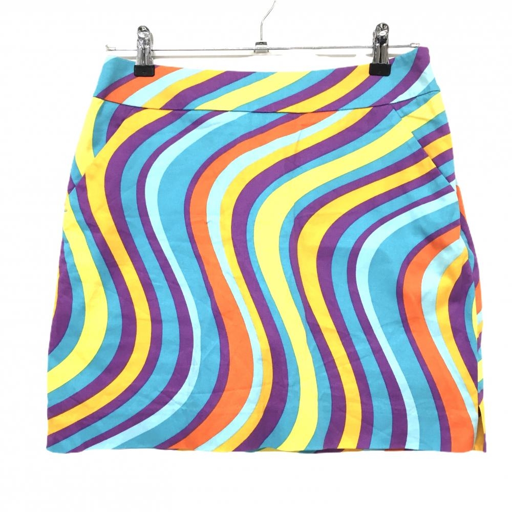 【美品】ラウドマウス スカート ブルー×グリーン ストライプ ロゴ刺しゅう レディース US-14 ゴルフウェア 大きいサイズ LOUDMOUTH