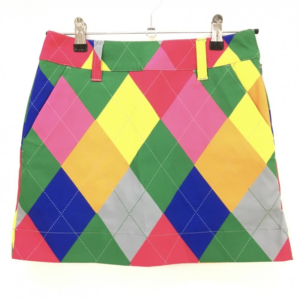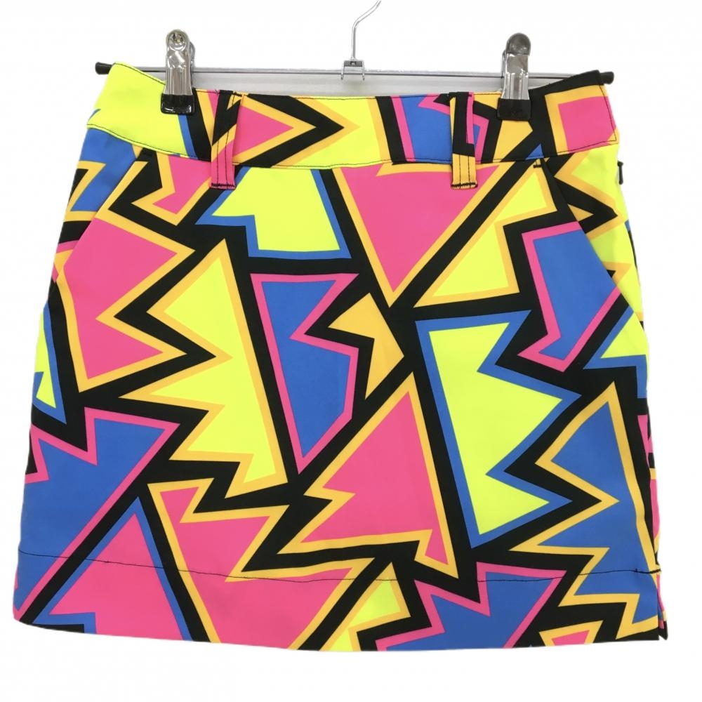 【美品】ラウドマウス スカート ピンク×マルチカラー シャガデリック バックロゴ レディース US-4(XL) ゴルフウェア LOUDMOUTH