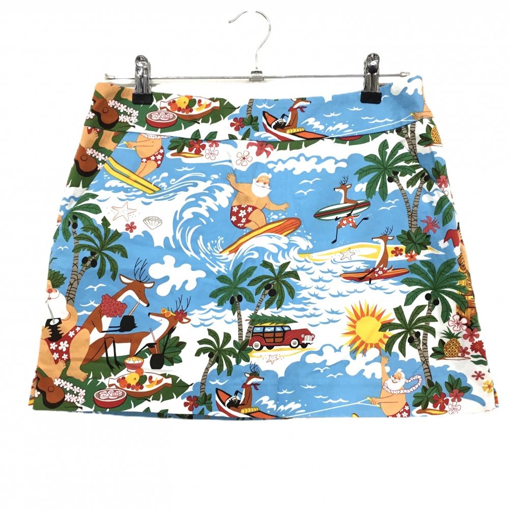【超美品】ラウドマウス スカート ライトブルー×マルチカラー サーフィンサンタ柄 ヤシの木 レディース US-6 ゴルフウェア LOUDMOUTH