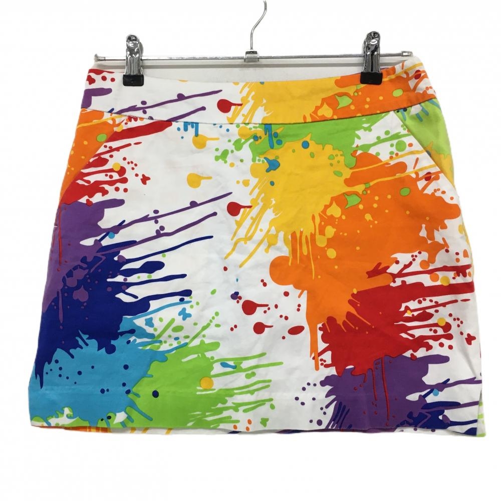 【超美品】ラウドマウス スカート 白×マルチカラー ペイント柄 ドロップクロス レディース US-14 ゴルフウェア 大きいサイズ LOUDMOUTH