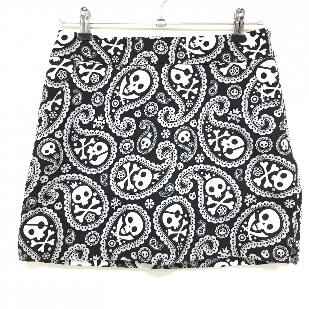 【美品】ラウドマウス スカート 黒×白×グレー ペイズリー スカル総柄 シバーミーティンバーズ レディース US2 ゴルフウェア LOUDMOUTH