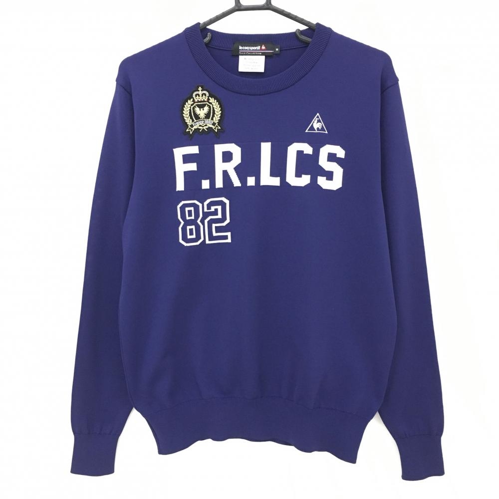 【超美品】ルコック 長袖ハイネックシャツ ダークネイビー×パープル ロゴプリント レディース M ゴルフウェア le coq sportif