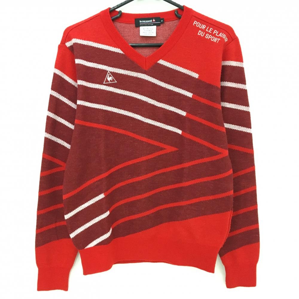【超美品】ルコックゴルフ セーター 白×レッド ロボット総柄 ロゴ刺しゅう ニット レディース M ゴルフウェア le coq sportif