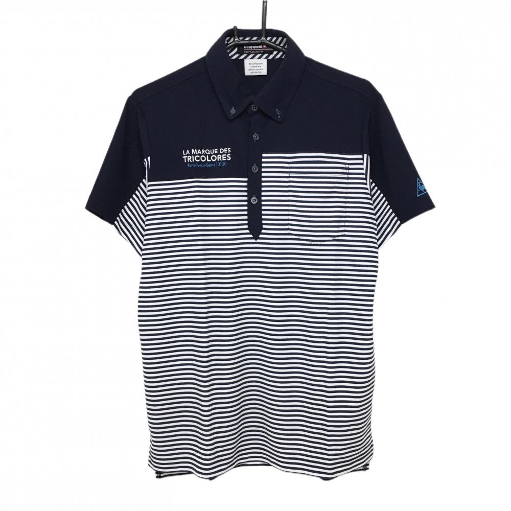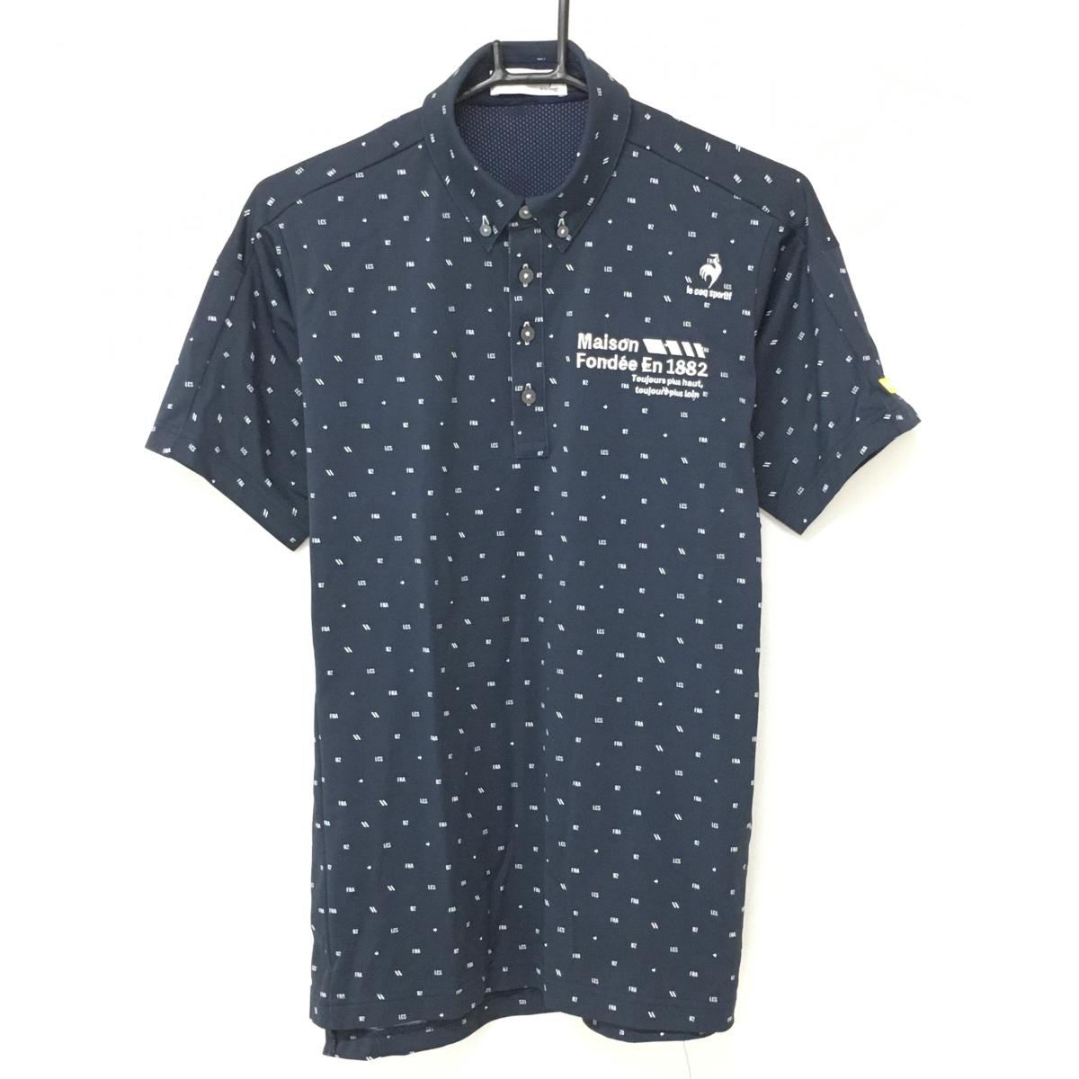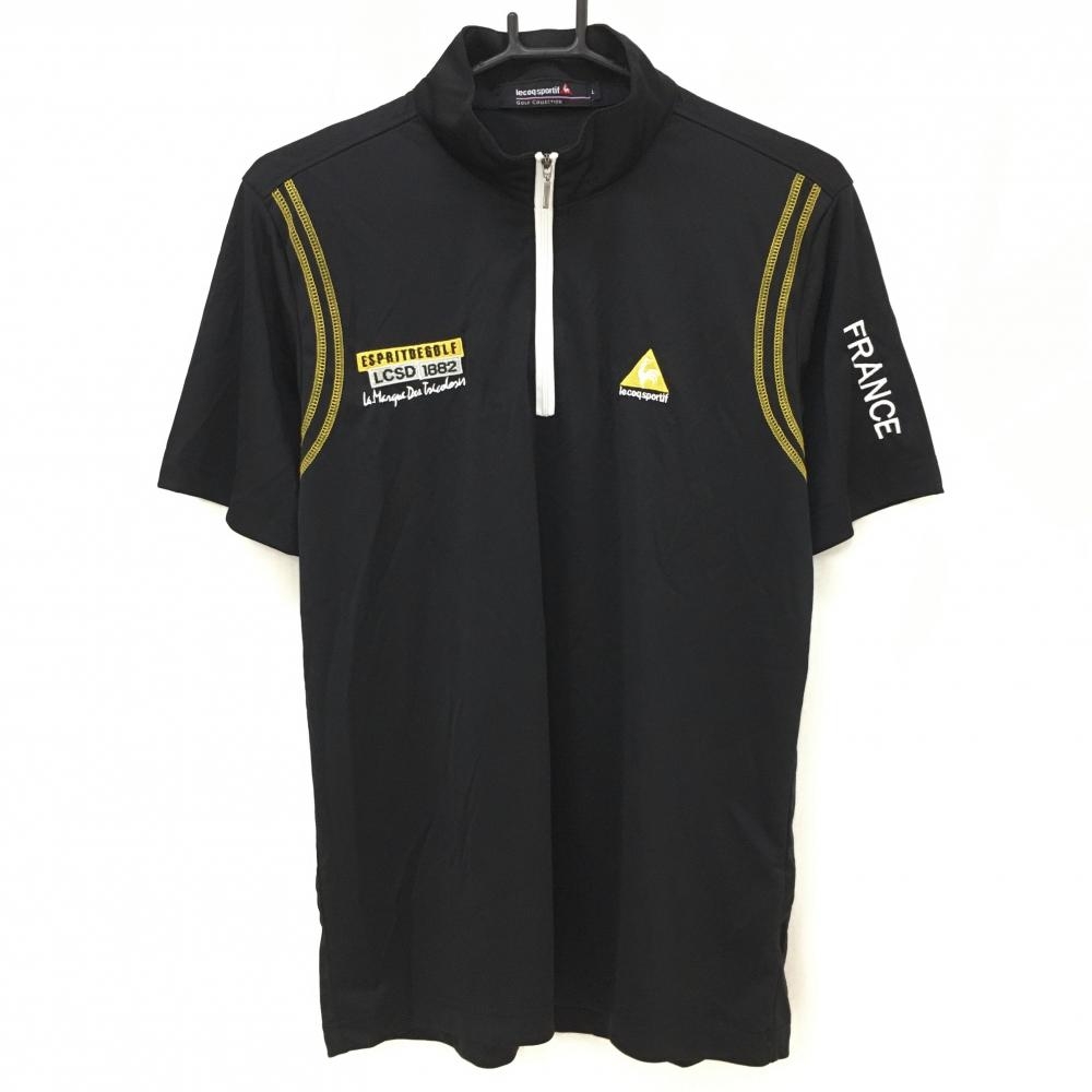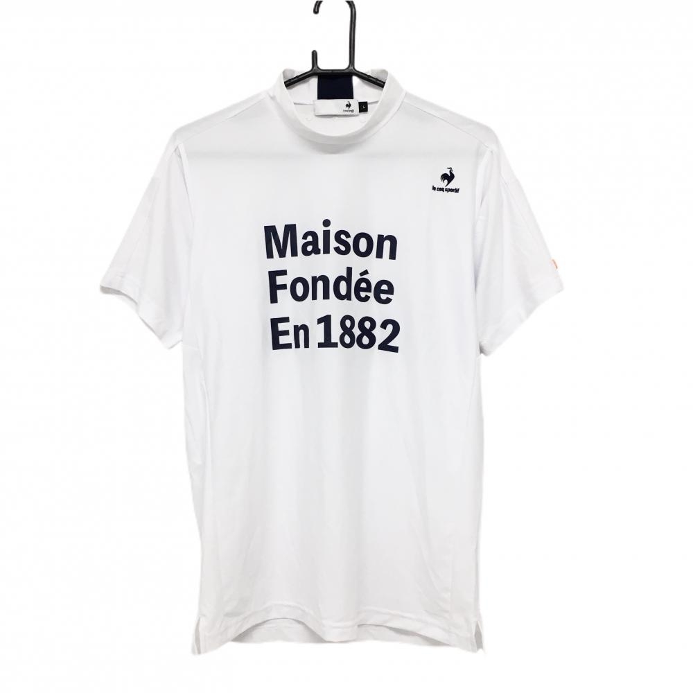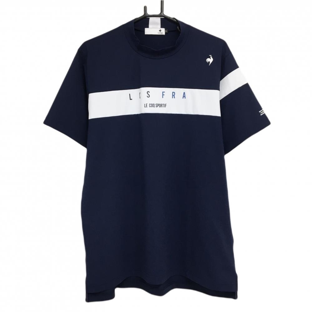 【超美品】ルコックゴルフ 半袖ハイネックシャツ ダークネイビー×白 ハーフジップ 胸元ロゴ メンズ L ゴルフウェア le coq sportif