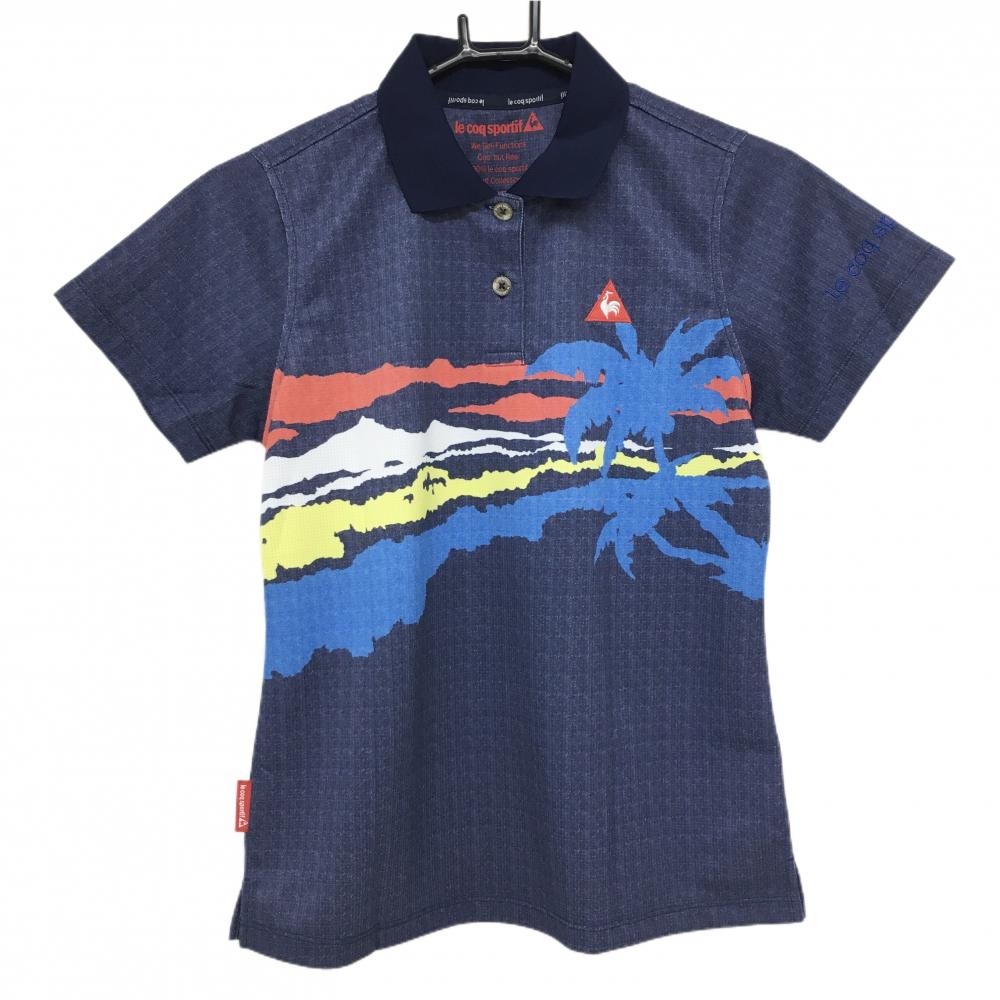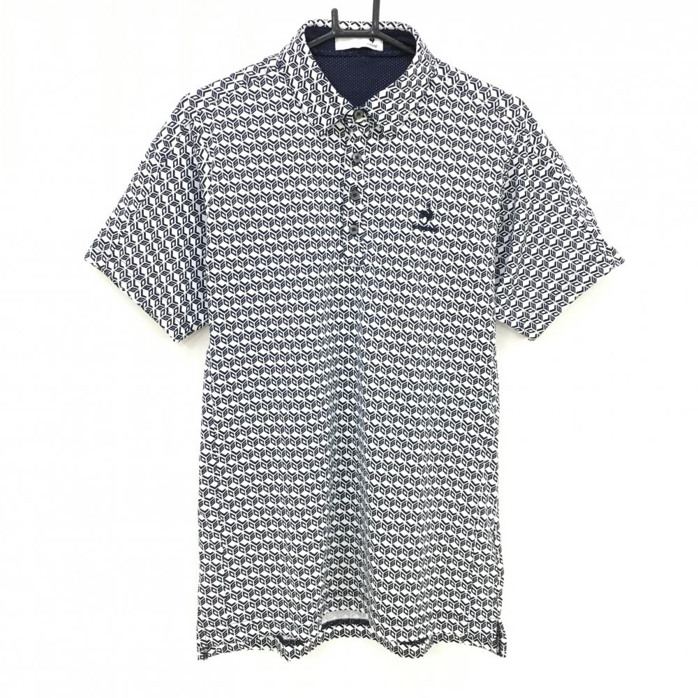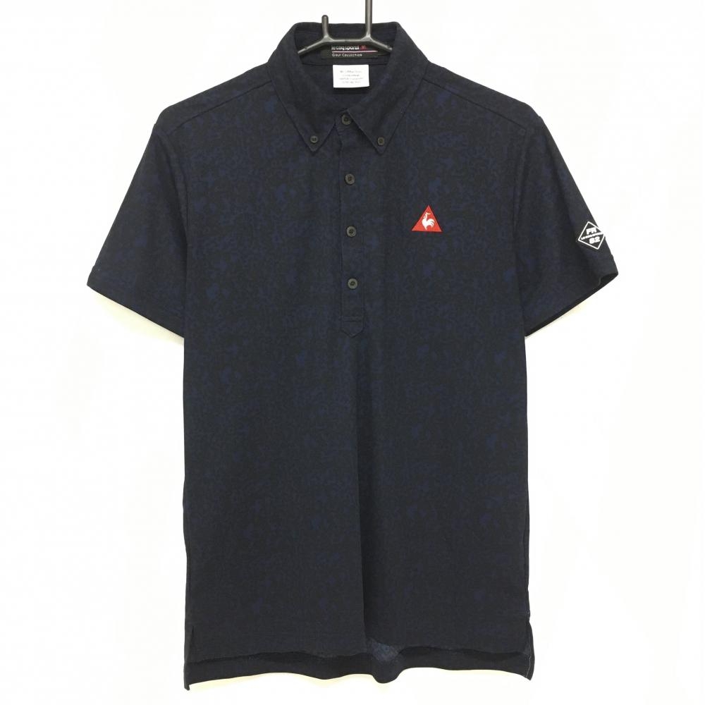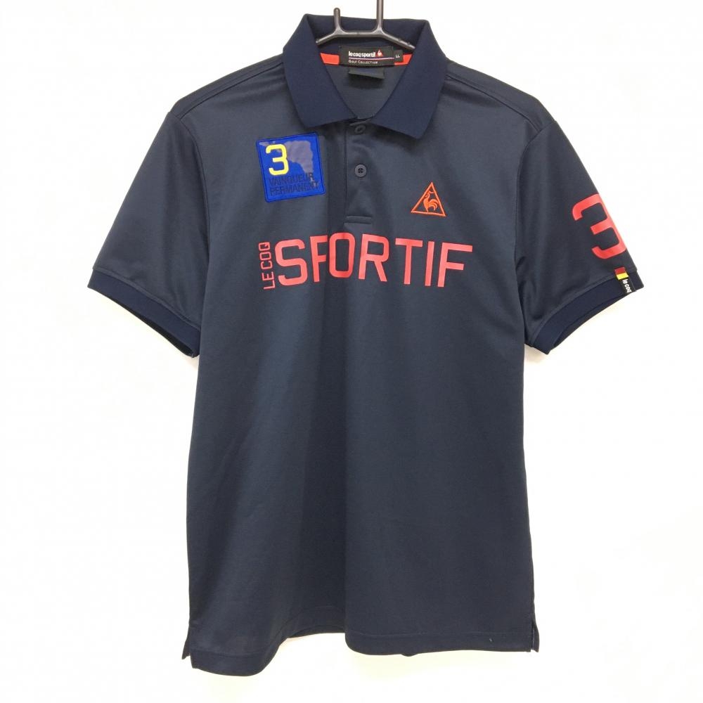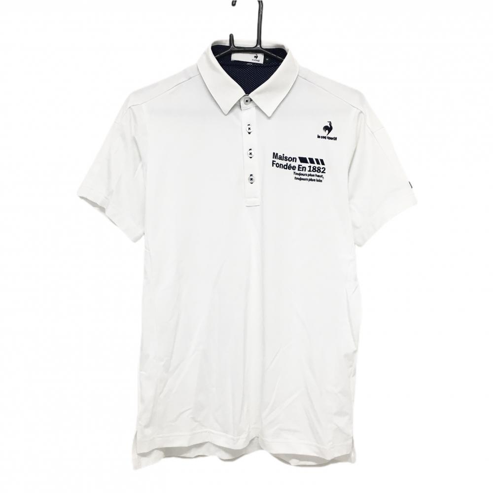 【超美品】ルコックゴルフ 半袖ハイネックシャツ ダークネイビー×白 ハーフジップ 胸元ロゴ メンズ L ゴルフウェア le coq sportif