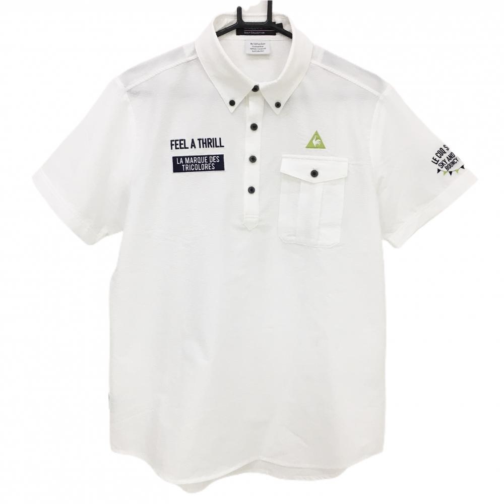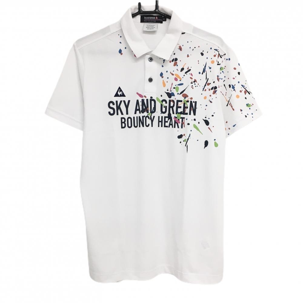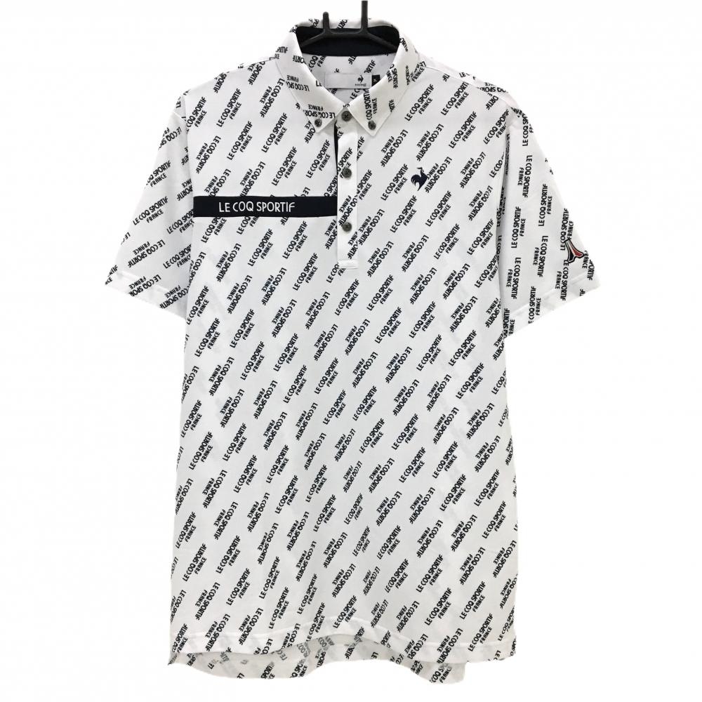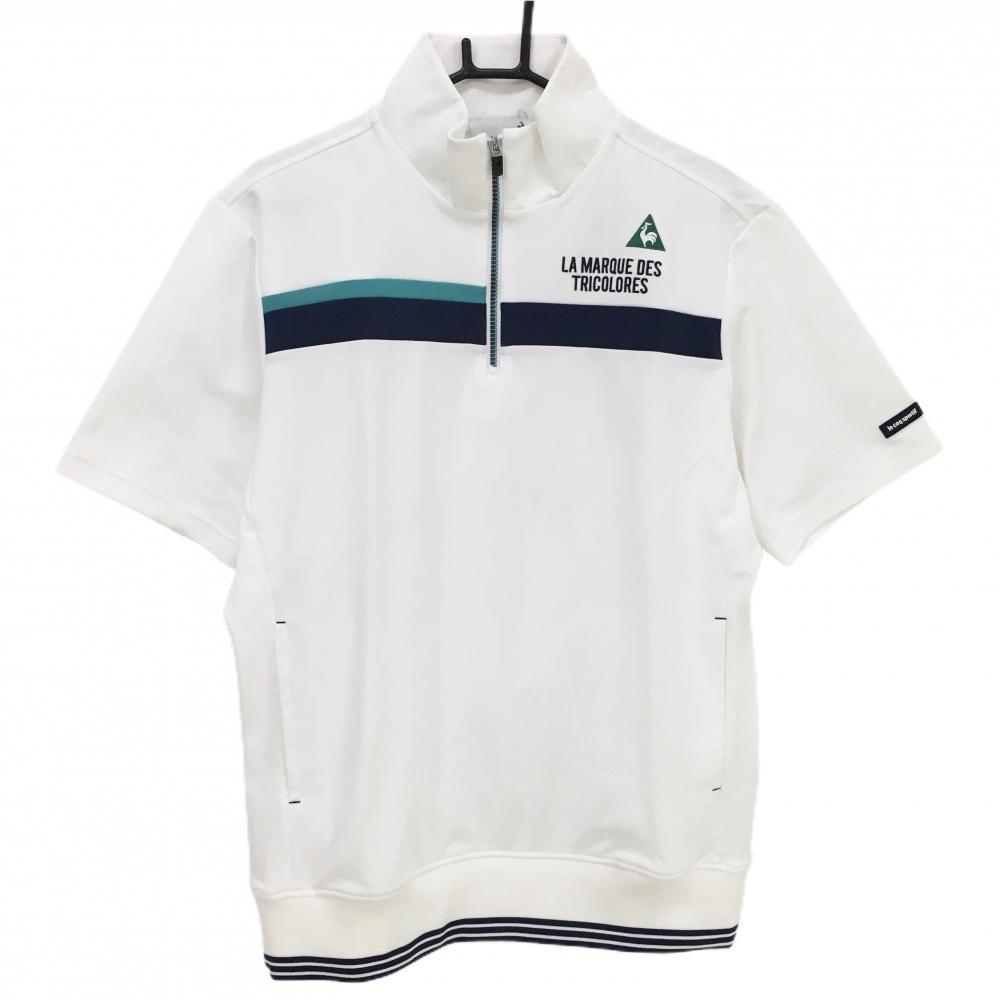 ルコックゴルフ 半袖ブルゾン 白×黒 ロゴレッド ハーフジップ 裾ドローコード メンズ M ゴルフウェア le coq sportif