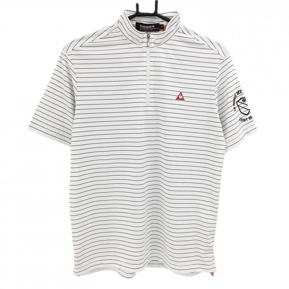 ルコックゴルフ 長袖ハイネックシャツ 白×黒 ハーフジップ 裏微起毛 メンズ L ゴルフウェア le coq sportif