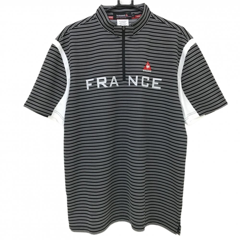 【美品】ルコックゴルフ 長袖ハイネックシャツ 黒×白 ボーダー ハーフジップ メンズ L ゴルフウェア le coq sportif