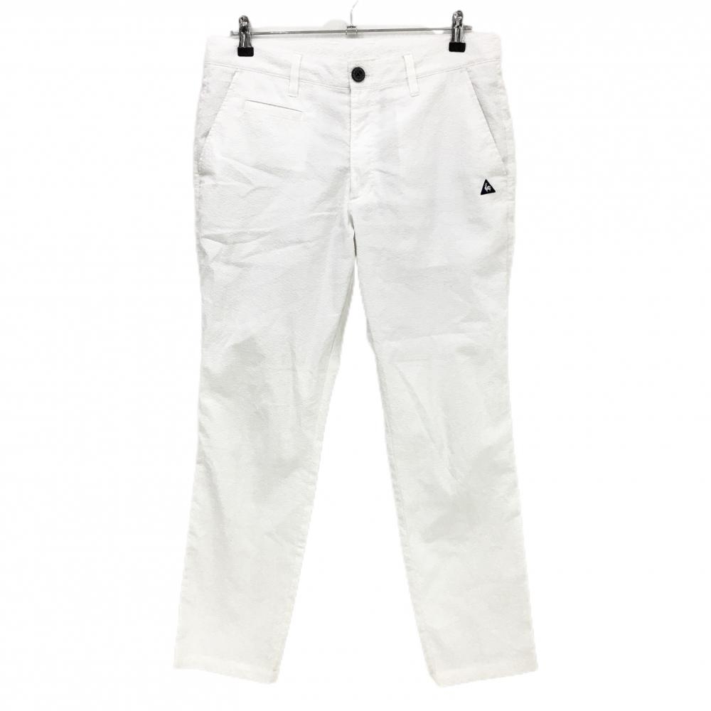 【美品】ルコックゴルフ パンツ 白 地模様 ロゴ刺しゅう 裏地メッシュ メンズ 92 ゴルフウェア le coq sportif