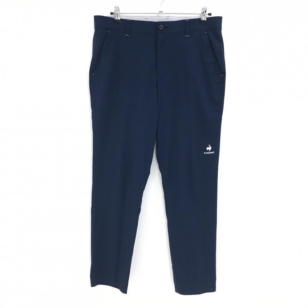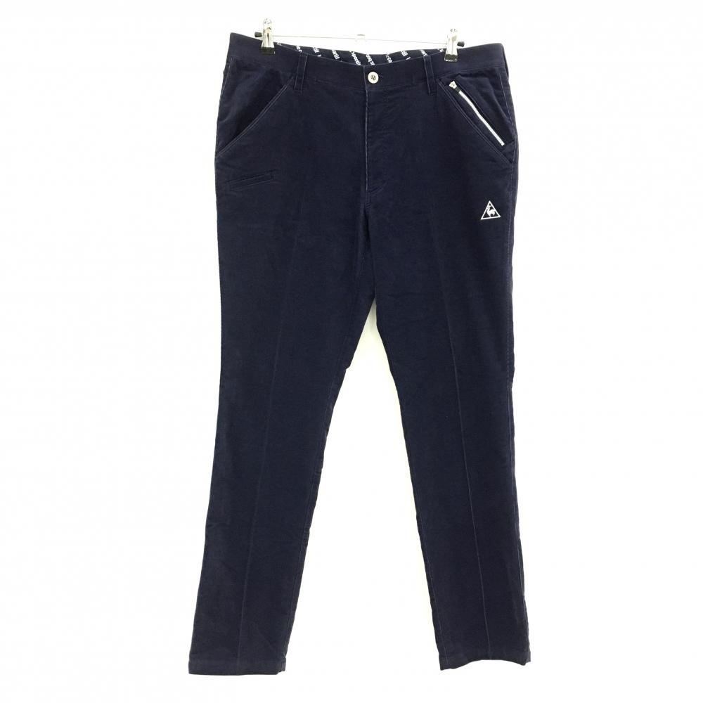 【美品】ルコックゴルフ パンツ 杢ネイビー バックロゴ 裏微起毛 メンズ 85 ゴルフウェア le coq sportif