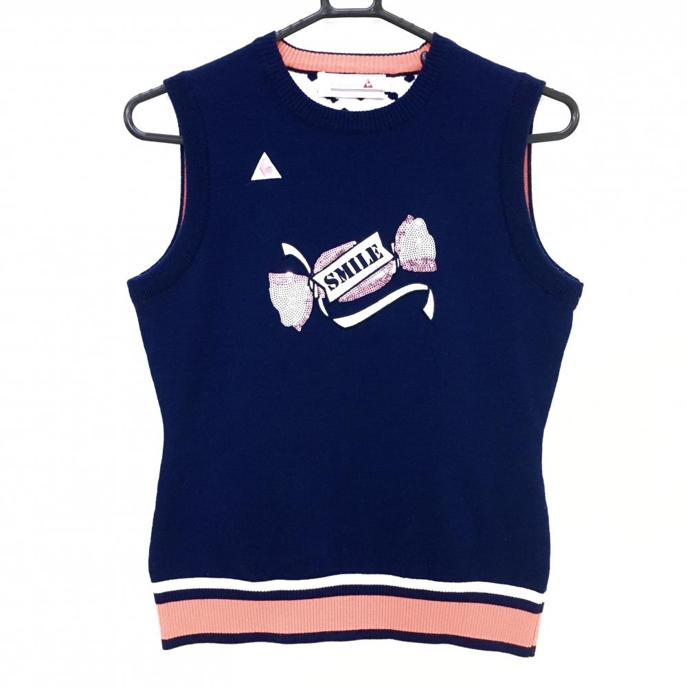 ルコックゴルフ アウターベスト ネイビー ロゴ白 裏地メッシュ レディース L ゴルフウェア le coq sportif
