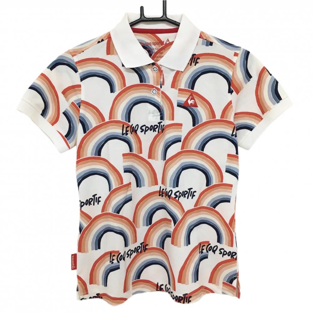 【美品】ルコックゴルフ 長袖ハイネックシャツ 白×ネイビー フロントロゴ レディース M ゴルフウェア le coq sportif