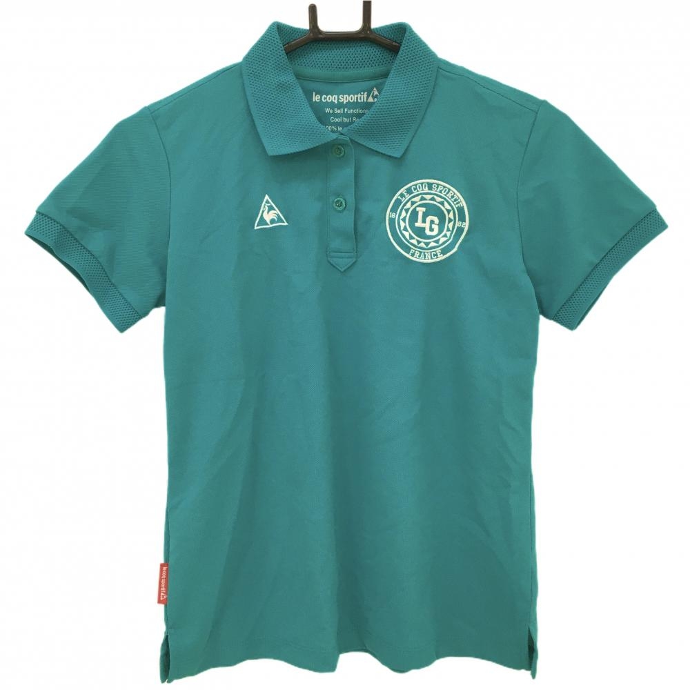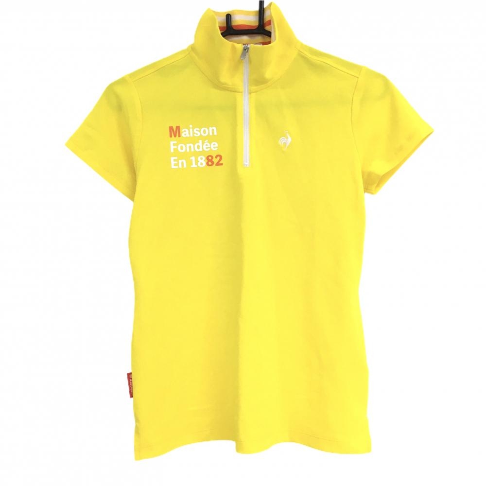 【美品】ルコックゴルフ 長袖ハイネックシャツ イエロー×グリーン フロントロゴ レディース M ゴルフウェア le coq sportif