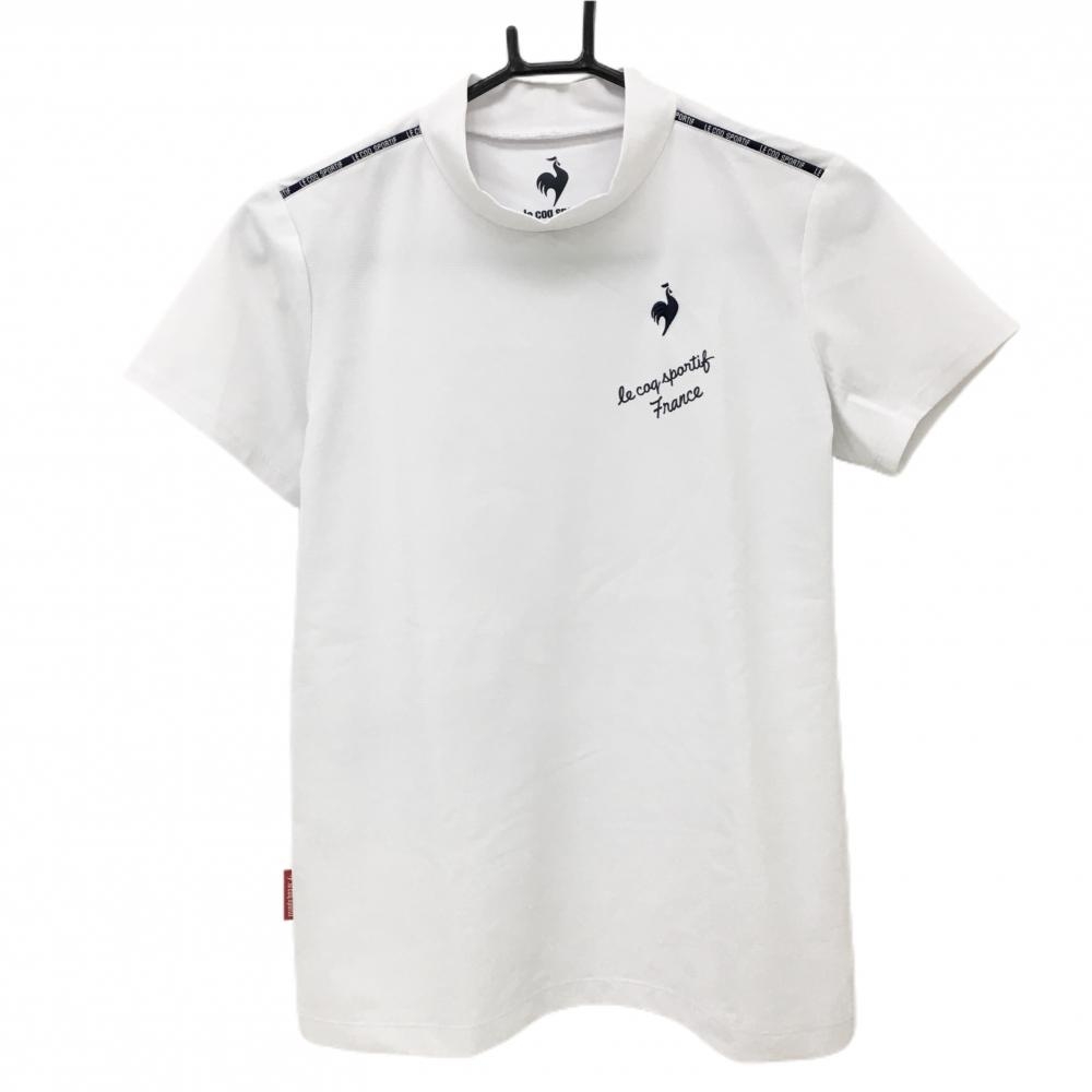 ルコックゴルフ 長袖ハイネックシャツ 白×ネイビー ハーフジップ フロントロゴ レディース L ゴルフウェア le coq sportif