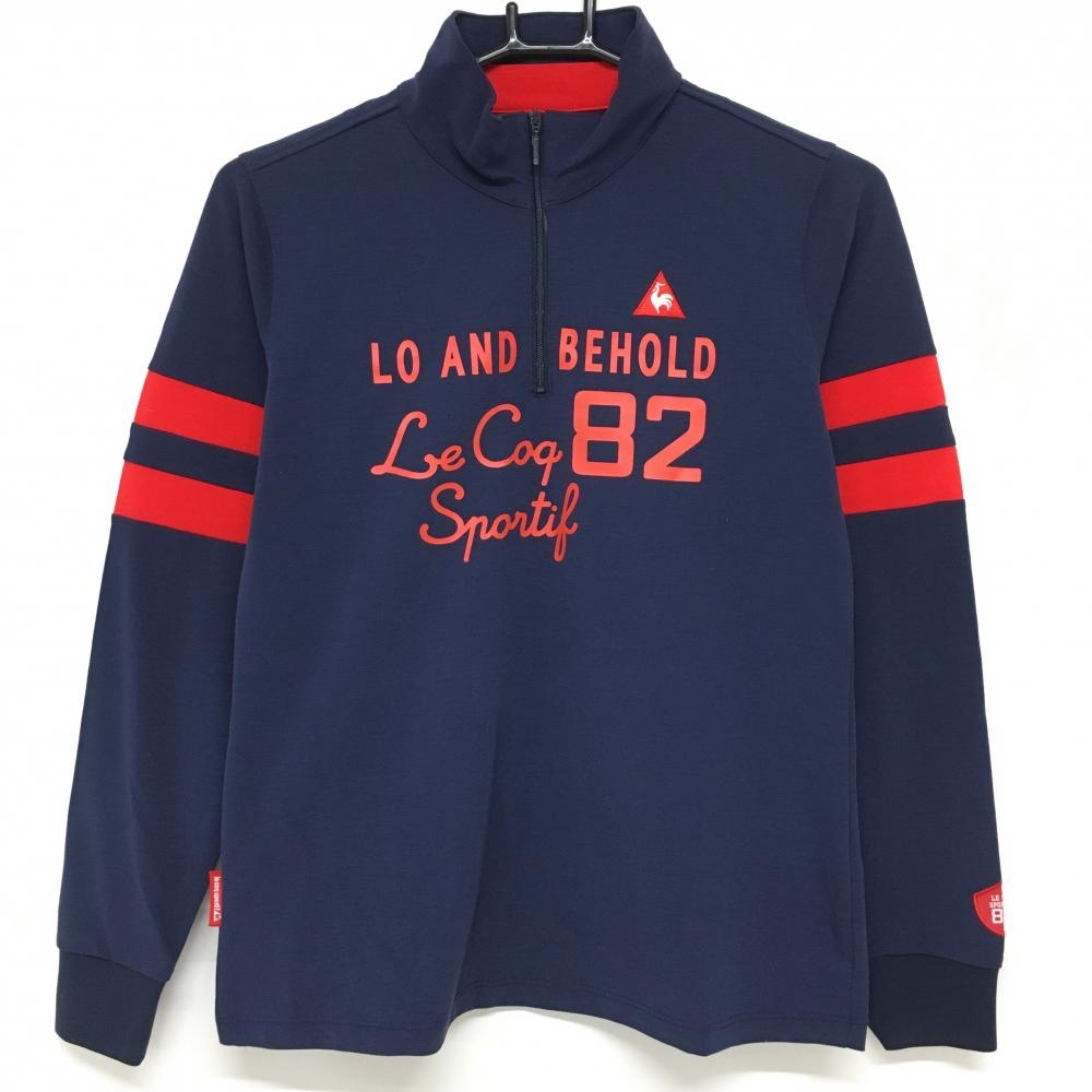 ルコックゴルフ 長袖ハイネックシャツ レッド ロゴネイビー ハーフジップ レディース L ゴルフウェア le coq sportif