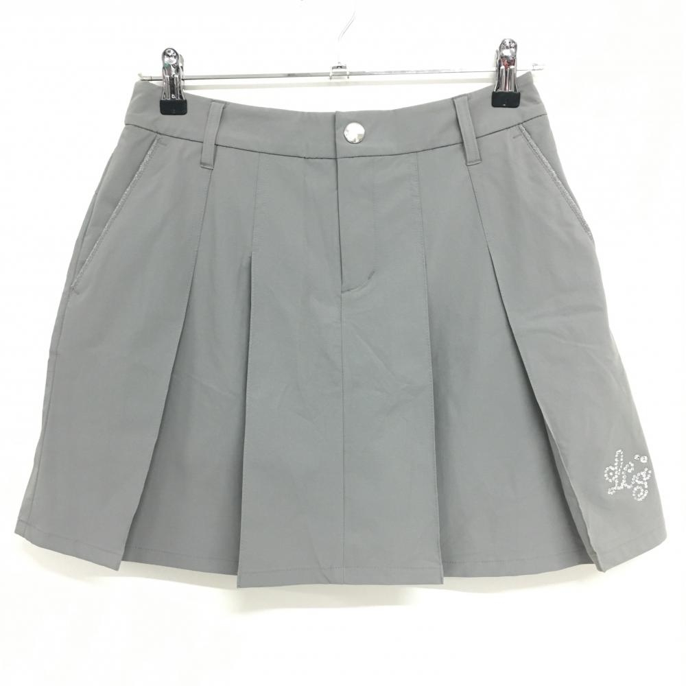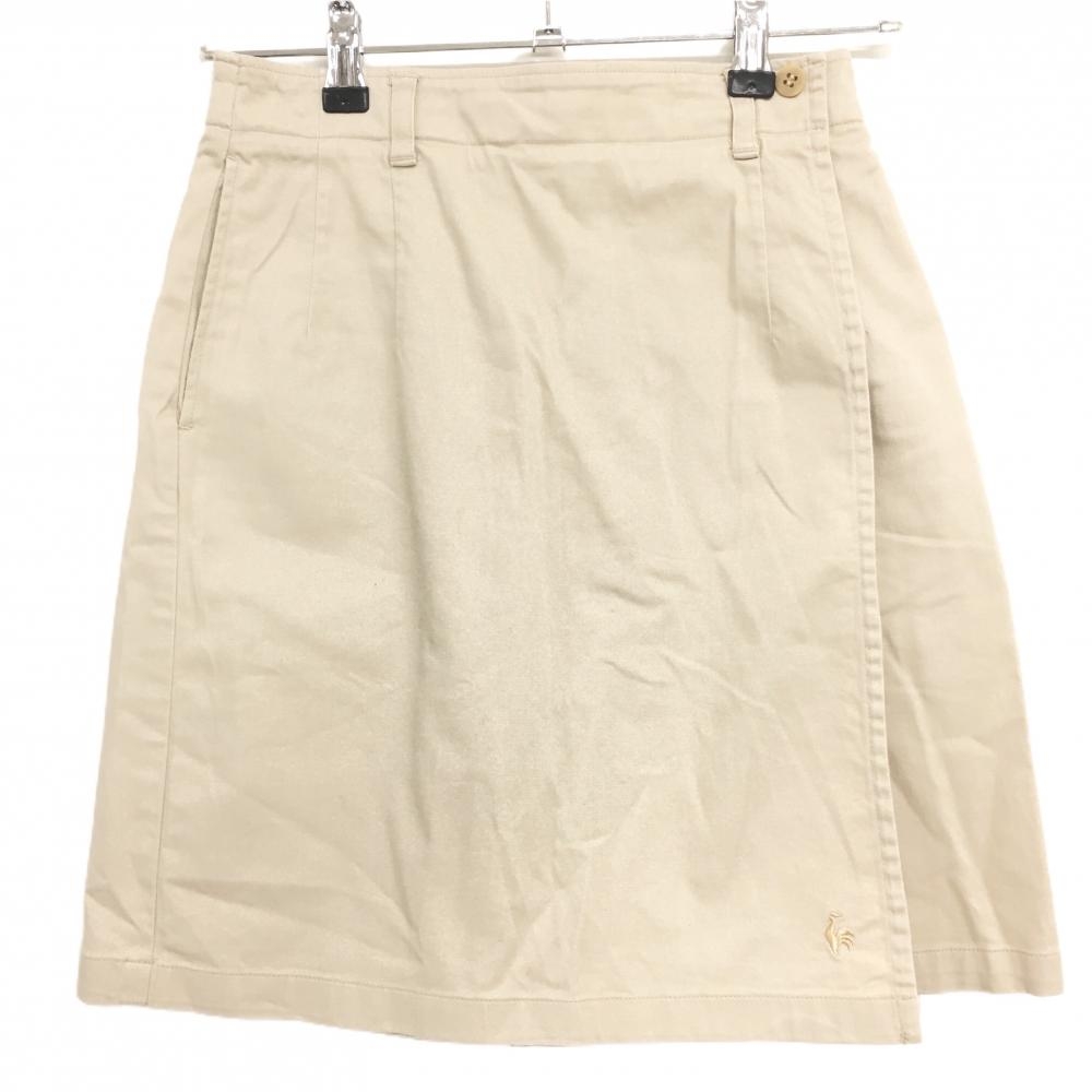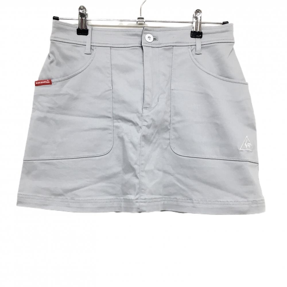 【美品】ルコックゴルフ スカート ライトグレー×ネイビー ウエストロゴ レディース M ゴルフウェア le coq sportif