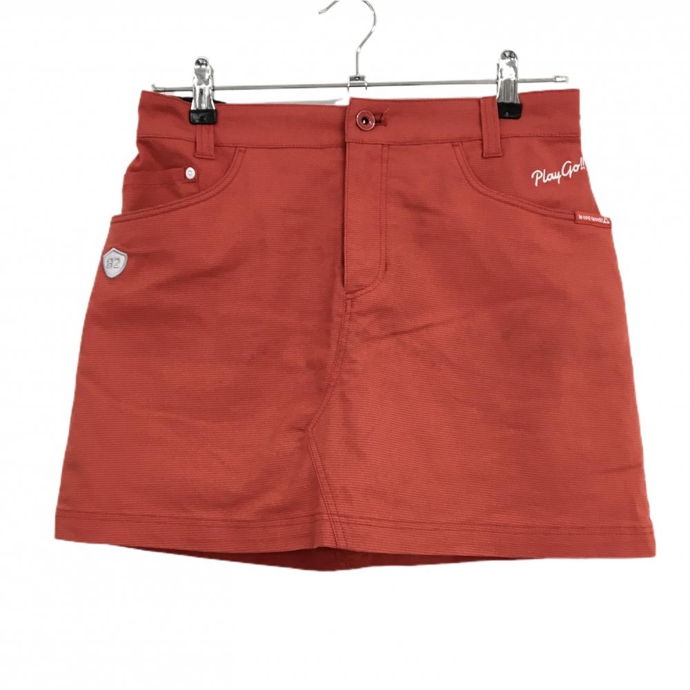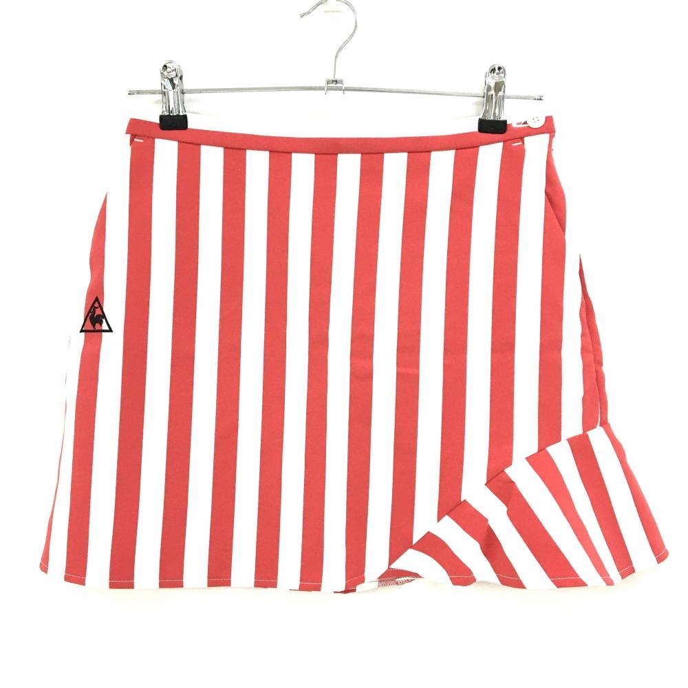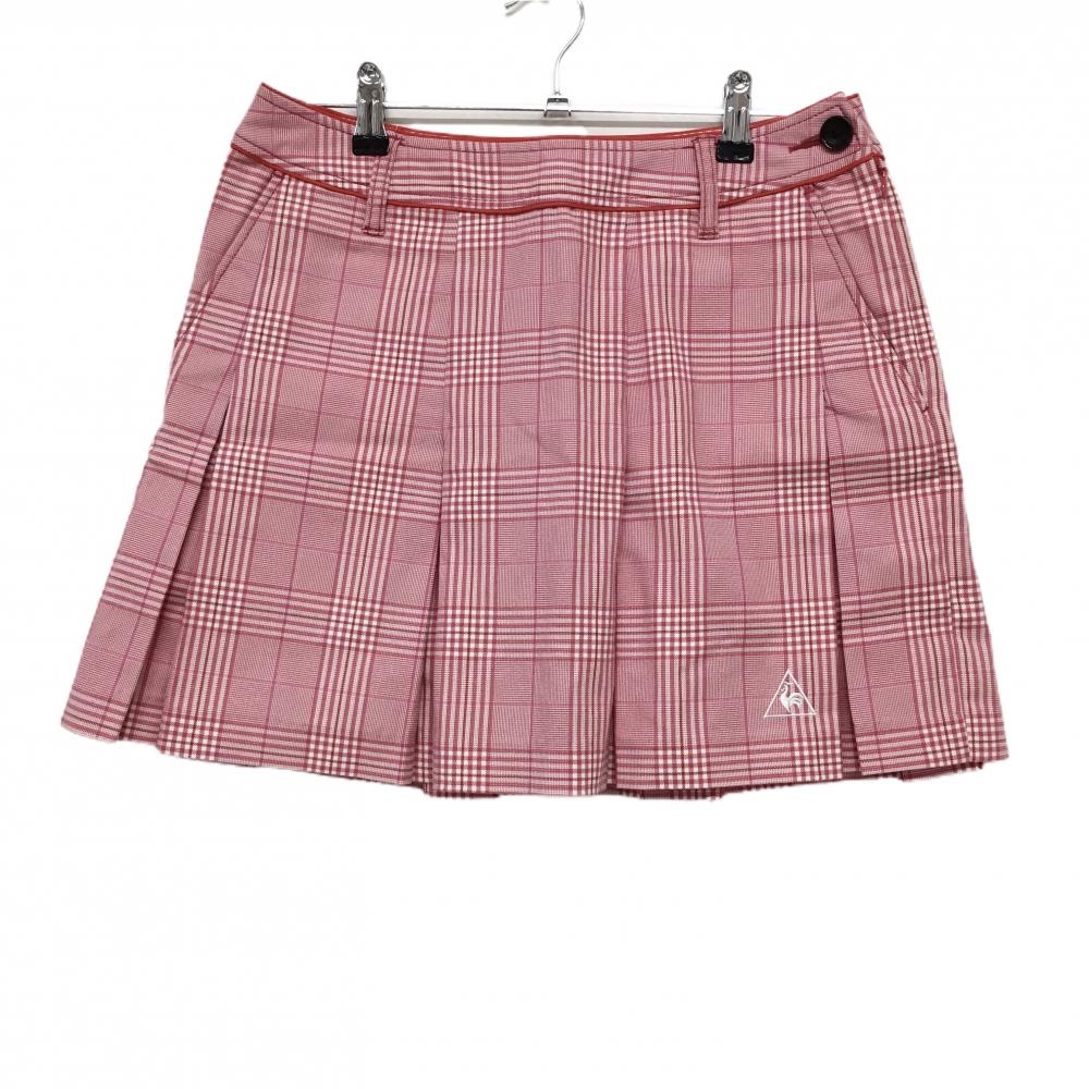 【超美品】ルコックゴルフ スカート サーモンピンク×白 サイドライン ロゴ刺しゅう レディース 7 ゴルフウェア le coq sportif