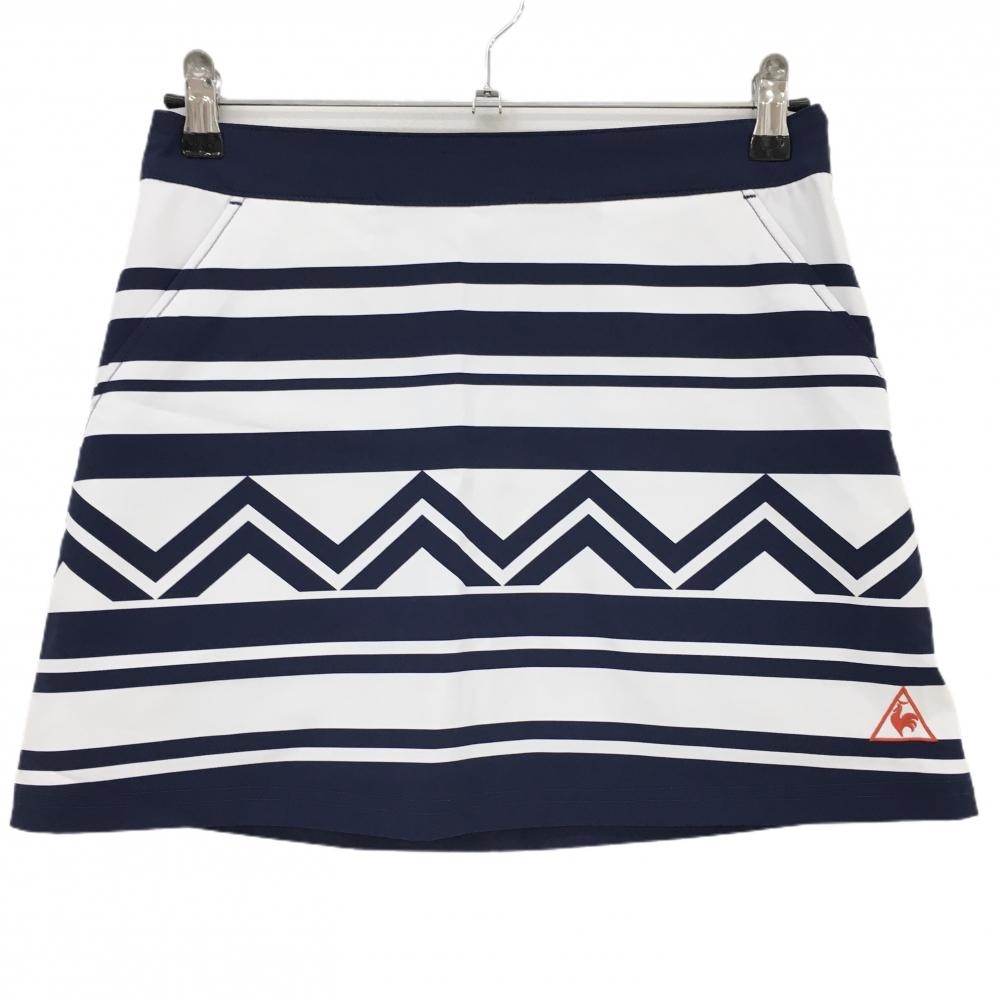 【超美品】ルコックゴルフ スカート ネイビー×白 サイドライン ロゴ刺しゅう レディース 7 ゴルフウェア le coq sportif