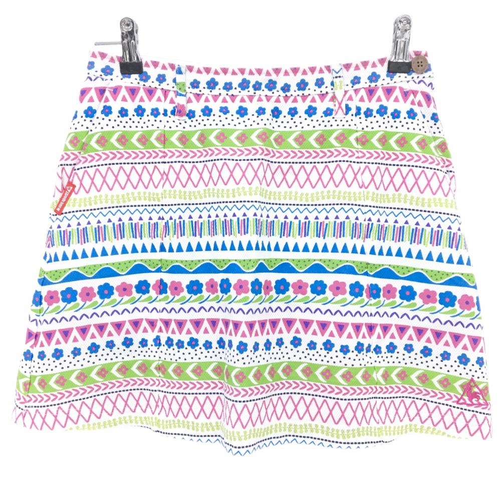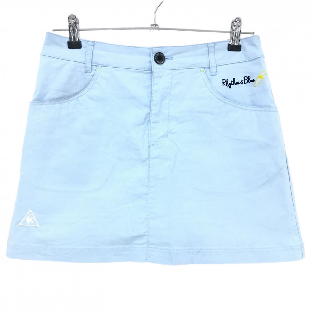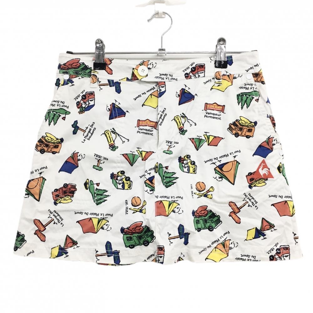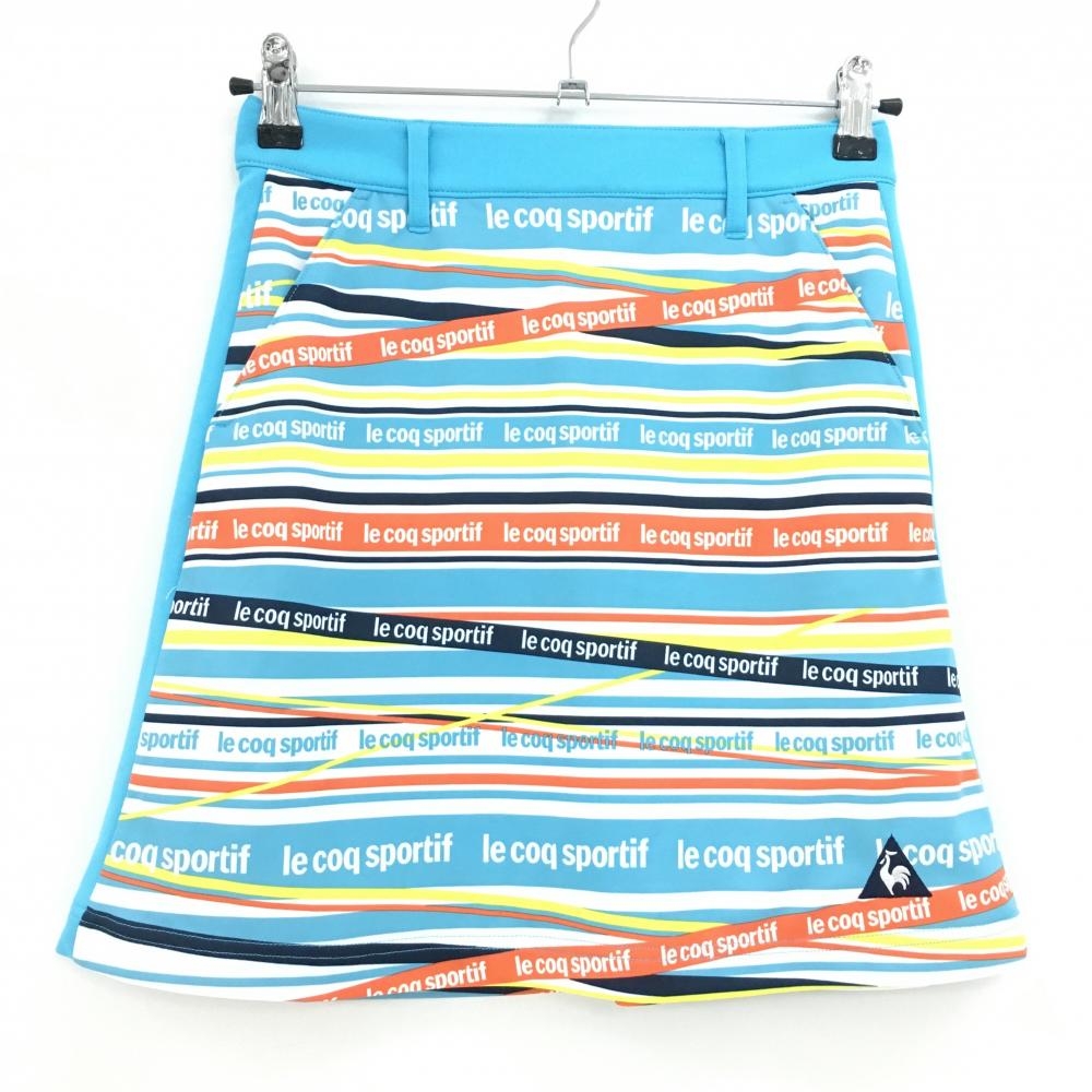 【美品】ルコックゴルフ スカート 白×ブルー×イエロー 一部ウエストゴム サイドライン レディース 7 ゴルフウェア le coq sportif