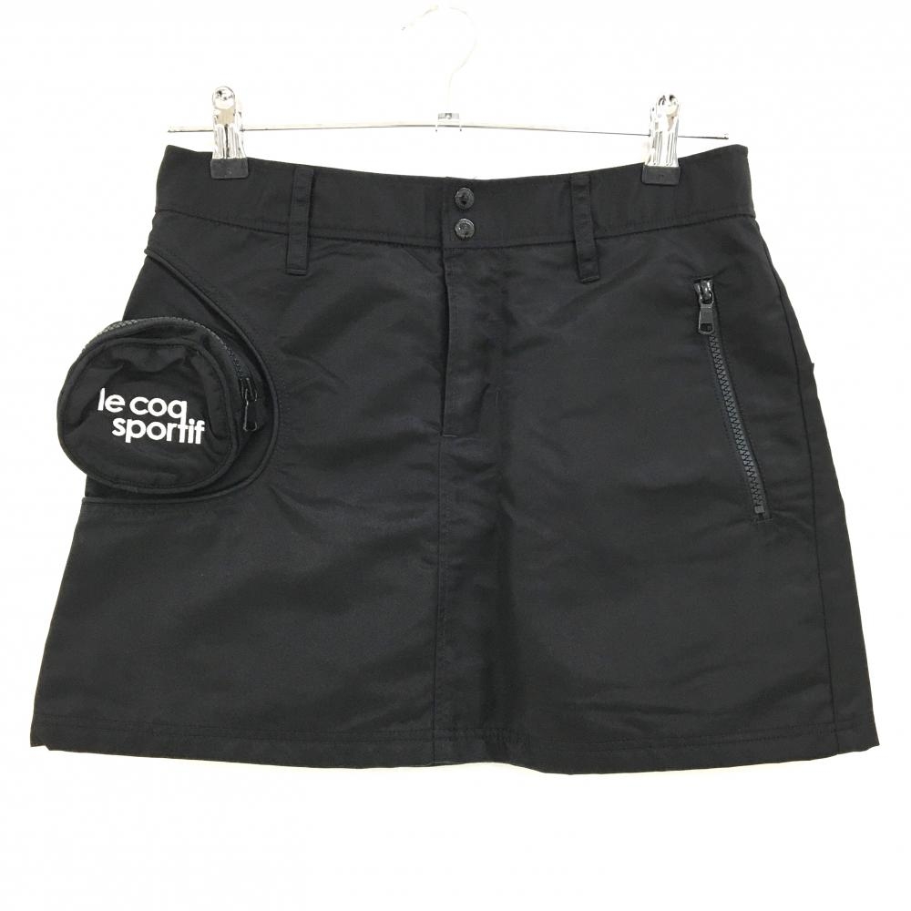 【超美品】ルコックゴルフ スカート 黒 ロゴ刺しゅう ストレッチ レディース 9 ゴルフウェア le coq sportif