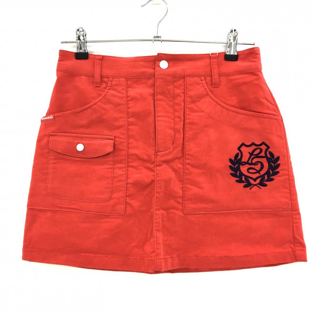 【美品】ルコックゴルフ コーデュロイスカート ピンク×レッド ウエストダブルボタン レディース 7 ゴルフウェア le coq sportif