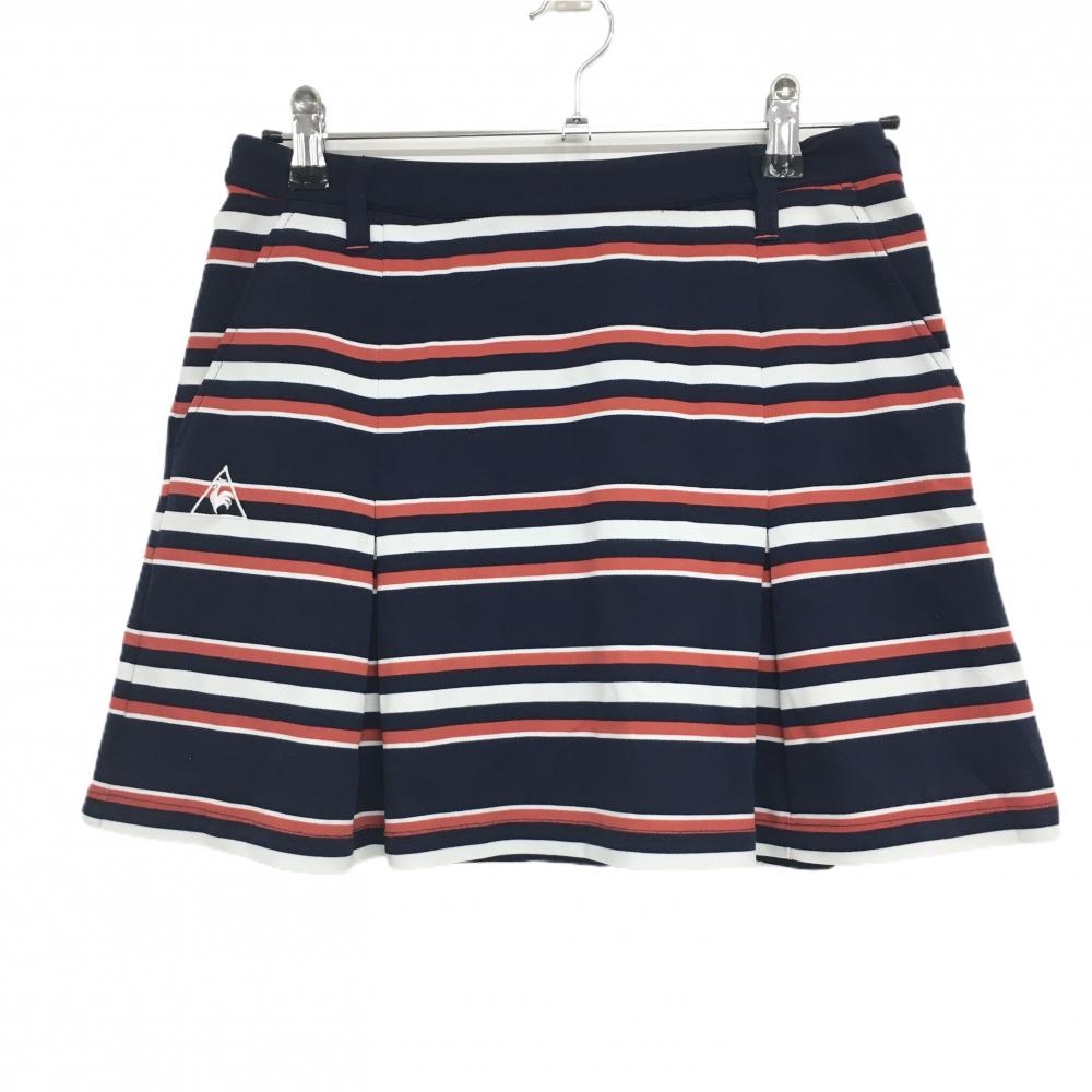 【超美品】ルコックゴルフ スカート ネイビー×白 ボーダー ロゴレッド レディース 9 ゴルフウェア le coq sportif
